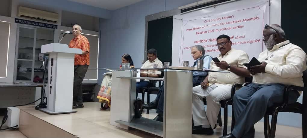 'ಕೋಮು ರಾಜಕೀಯ ನಿಲ್ಲಿಸಿ, ಅಭಿವೃದ್ಧಿಯತ್ತ ಗಮನ ನೀಡಿ': ನಾಗರಿಕ ಸಮಾಜ ವೇದಿಕೆ ಚುನಾವಣಾ ಪ್ರಣಾಳಿಕೆ ಬಿಡುಗಡೆ