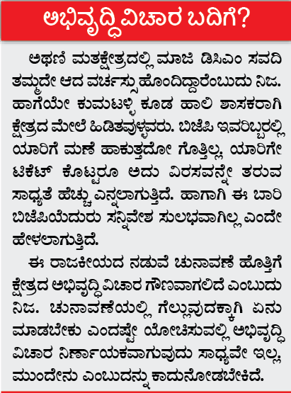ಅಥಣಿ ವಿಧಾನಸಭಾ ಕ್ಷೇತ್ರ: ಬಿಜೆಪಿಗೆ ಬಿಜೆಪಿಯೆ ಎದುರಾಳಿ?
