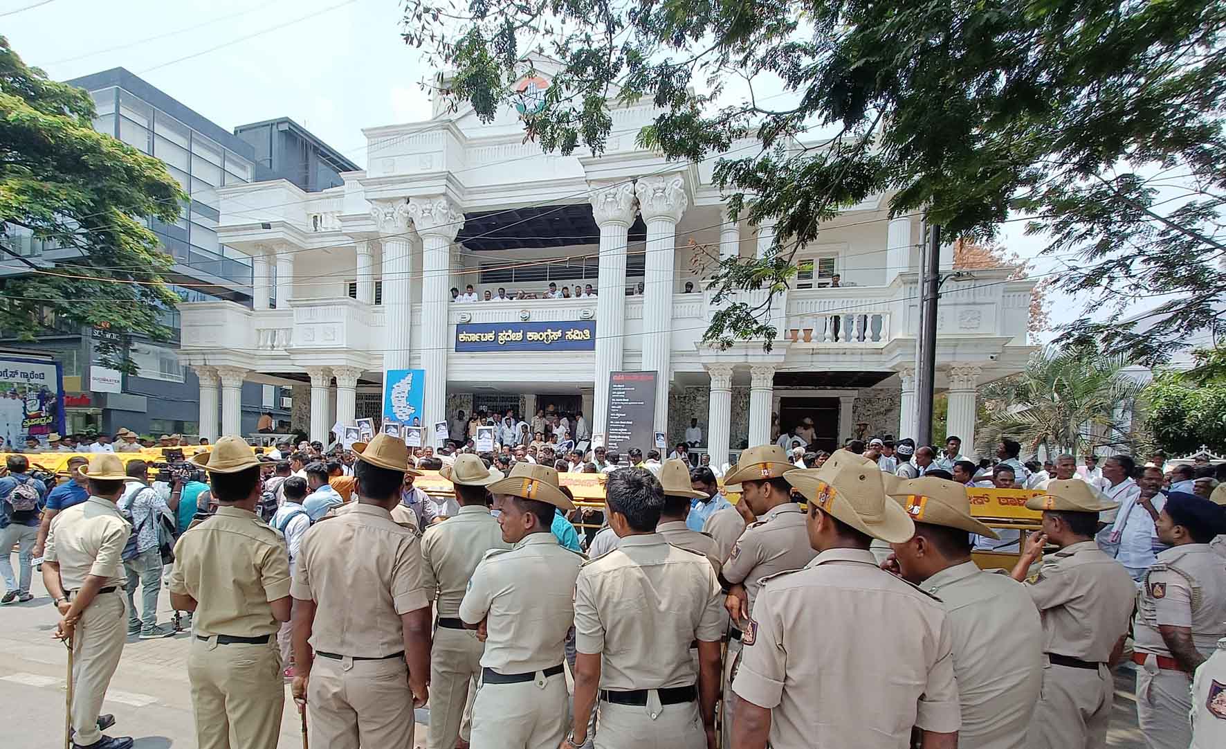 ತರೀಕೆರೆ ಕ್ಷೇತ್ರದಿಂದ ಎಚ್.ಎಂ.ಗೋಪಿಕೃಷ್ಣಗೆ ಟಿಕೆಟ್ ನೀಡುವಂತೆ ಆಗ್ರಹಿಸಿ ಬೆಂಗಳೂರಿನ ಕಾಂಗ್ರೆಸ್ ಕಚೇರಿ ಮುಂದೆ ಧರಣಿ