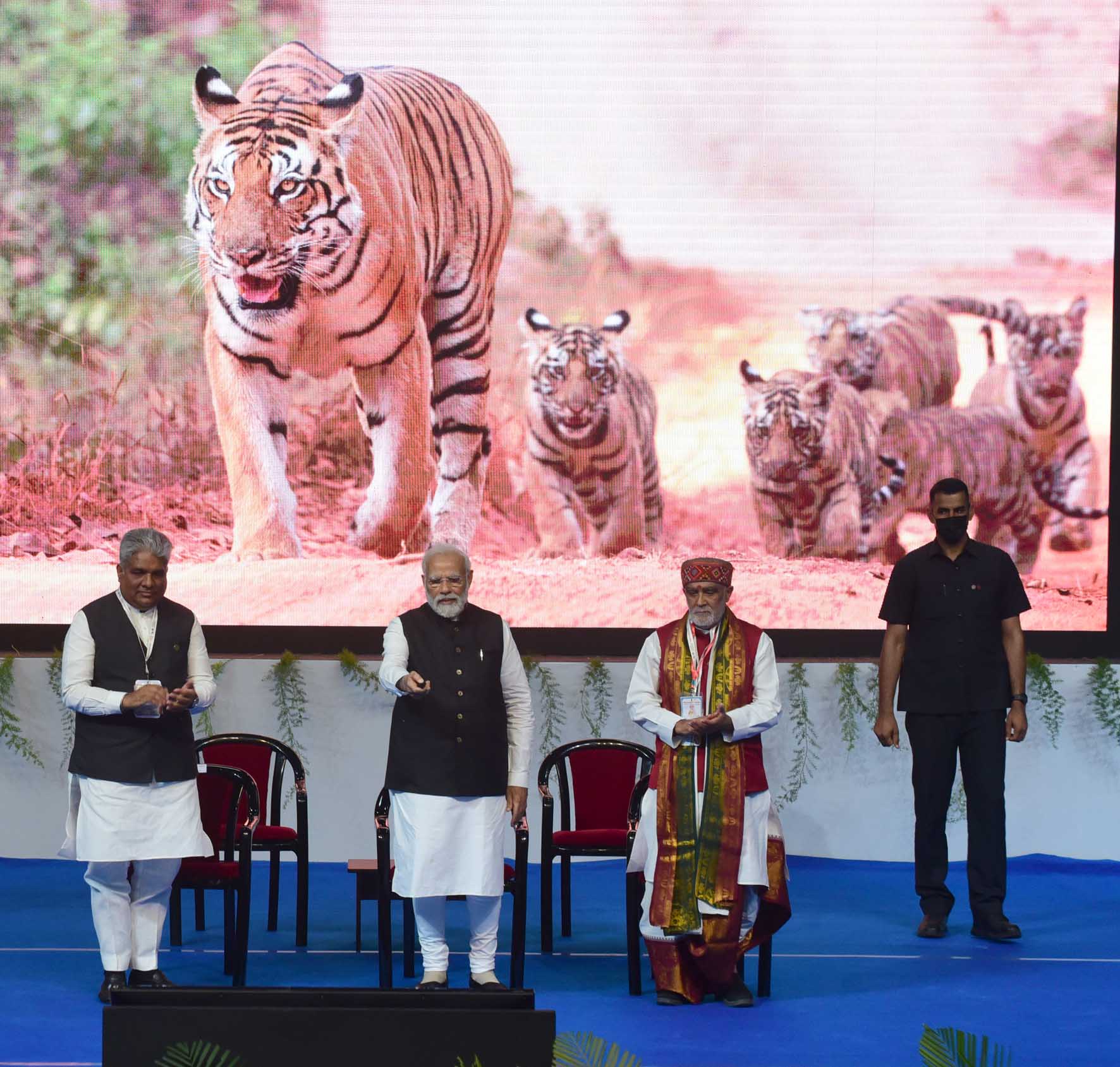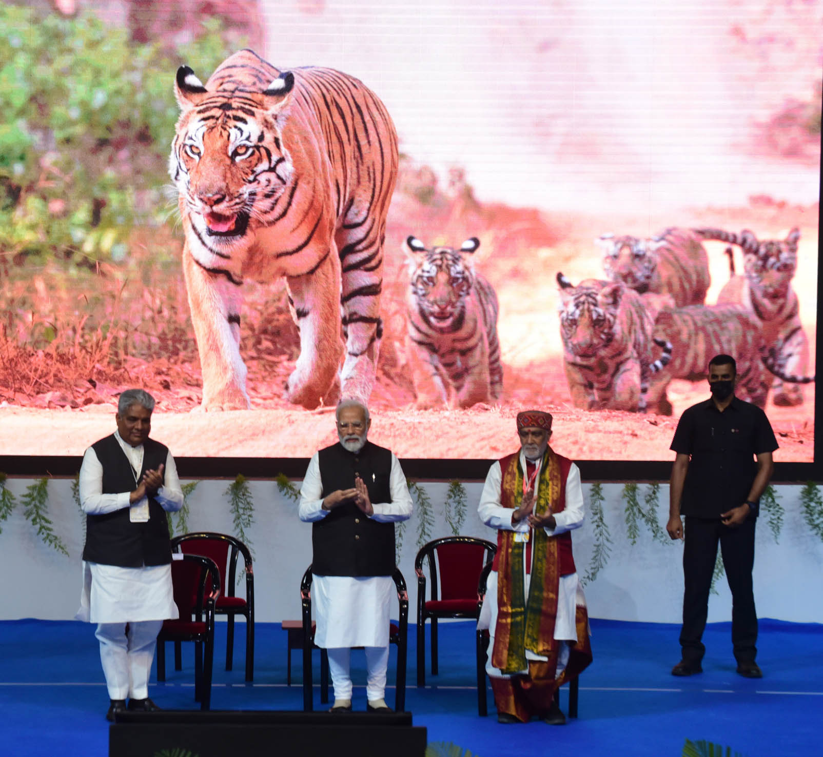 ಕಾರ್ಯಕ್ರಮಕ್ಕೂ ಮುನ್ನ, ಹುಲಿಯ ಚಿತ್ರವುಳ್ಳ ಫಲಕವನ್ನು ಕೇಂದ್ರ ಅರಣ್ಯ ಸಚಿವ ಭೂಪೇಂದ್ರ ಯಾದವ್ ಪ್ರಧಾನಿಗೆ ನೀಡಿದರು. ಪರಿಸರ, ಅರಣ್ಯ ಹಾಗೂ ಹವಾಮಾನ ಬದಲಾವಣೆ ಖಾತೆಯ ರಾಜ್ಯ ಸಚಿವ ಅಶ್ವಿನಿಕುಮಾರ್ ಚೌಬೆ ಉಪಸ್ಥಿತರಿದ್ದರು.