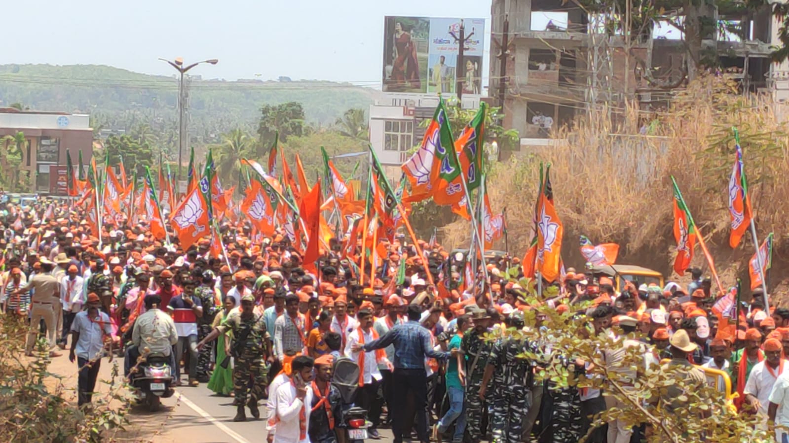 ರೋಡ್ ಶೋ ಮೂಲಕ ಸಾವಿರಾರು ಸಂಖ್ಯೆಯ ಕಾರ್ಯಕರ್ತರೊಂದಿಗೆ ಭಟ್ಕಳ ಮಿನಿವಿಧಾನಸೌಧಕ್ಕೆ ಆಗಮಿಸಿದ ಸುನಿಲ್ ನಾಯ್ಕ ಜಿಲ್ಲಾ ಉಸ್ತುವಾರಿ ಸಚಿವ ಕೋಟಾ ಶ್ರೀನಿವಾಸ ಪುಜಾರಿ ಹಾಗೂ ಮಾಜಿ ಸಚಿವ ಪ್ರಮೋದ ಮದ್ವರಾಜ್ ರೊಂದಿಗೆ ನಾಮಪತ್ರ ಸಲ್ಲಿಸಿದರು.