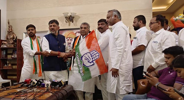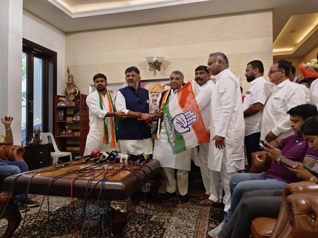 ಕೈ ಹಿಡಿದ ವಿಶ್ವನಾಥ್ ಪಾಟೀಲ್; ಬಿಜೆಪಿಯ ಅಣೆಕಟ್ಟು ಒಡೆದಿರುವುದಕ್ಕೆ ಇದಕ್ಕಿಂತ ಸಾಕ್ಷಿ ಬೇಕಾ ಎಂದ ಡಿಕೆ ಶಿವಕುಮಾರ್