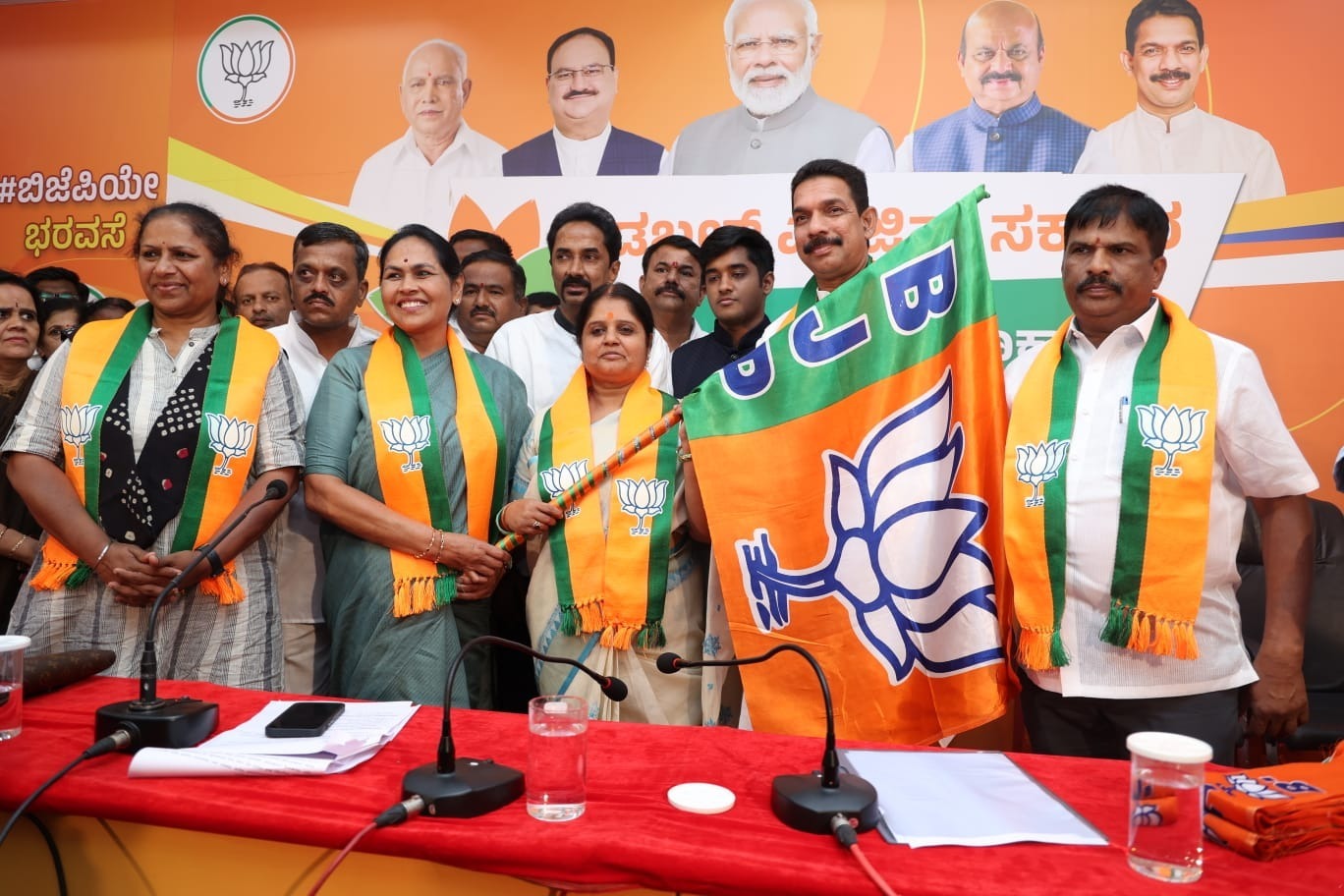 ರಾಜ್ಯ ಚುನಾವಣಾ ನಿರ್ವಹಣಾ ಸಮಿತಿ ಸಂಚಾಲಕರು ಹಾಗೂ ಕೇಂದ್ರ ಸಚಿವೆ ಕು. ಶೋಭಾ ಕರಂದ್ಲಾಜೆ, ರಾಜ್ಯ ವಕ್ತಾರರು ಮತ್ತು ವಿಧಾನಪರಿಷತ್ ಸದಸ್ಯೆ ಡಾ. ತೇಜಸ್ವಿನಿ ಗೌಡ, ರಾಜ್ಯ ಪ್ರಧಾನ ಕಾರ್ಯದರ್ಶಿ ಸಿದ್ದರಾಜು ಈ ಸಂದರ್ಭದಲ್ಲಿ ಇದ್ದರು.