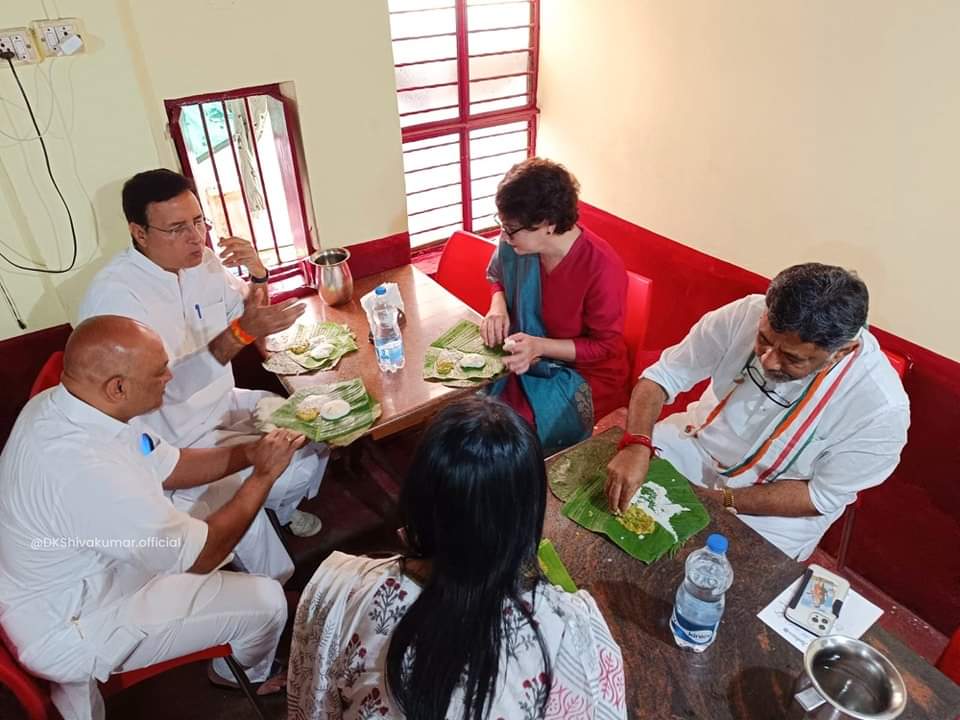 ಪ್ರಿಯಾಂಕಾ ಗಾಂಧಿಯವರೊಂದಿಗೆ ಎಐಸಿಸಿ ಪ್ರಧಾನ ಕಾರ್ಯದರ್ಶಿ ಹಾಗೂ ರಾಜ್ಯ ಉಸ್ತುವಾರಿ ರಣದೀಪ್ ಸಿಂಗ್ ಸುರ್ಜೇವಾಲ, ಕೆಪಿಸಿಸಿ ಅಧ್ಯಕ್ಷ ಡಿ.ಕೆ.ಶಿವಕುಮಾರ್, ಮಾಜಿ ಶಾಸಕ ಹಾಗೂ ಕೆ.ಆರ್.ಕ್ಷೇತ್ರದ ಕಾಂಗ್ರೆಸ್ ಅಭ್ಯರ್ಥಿ ಎಂ.ಕೆ.ಸೋಮಶೇಖರ್, ಐಶ್ವರ್ಯ ಮಂಚನಳ್ಳಿ ಮಹದೇವು ಅವರು ಕೂಡ ದೋಸೆ ತಿಂದರು.