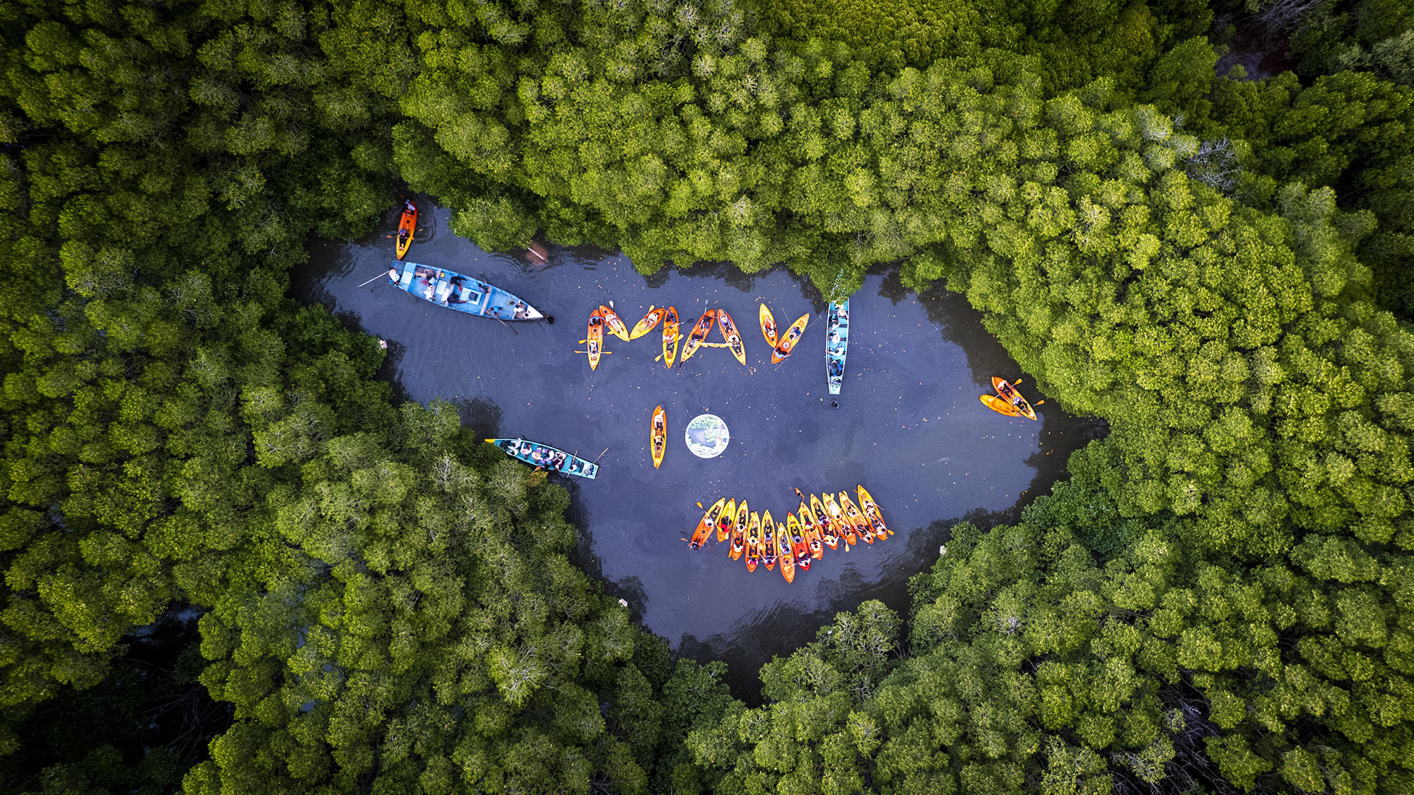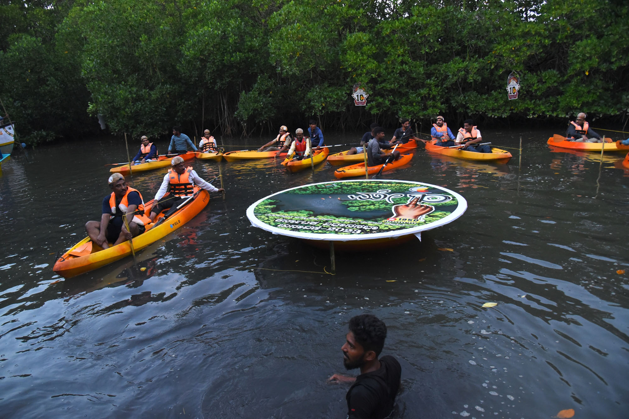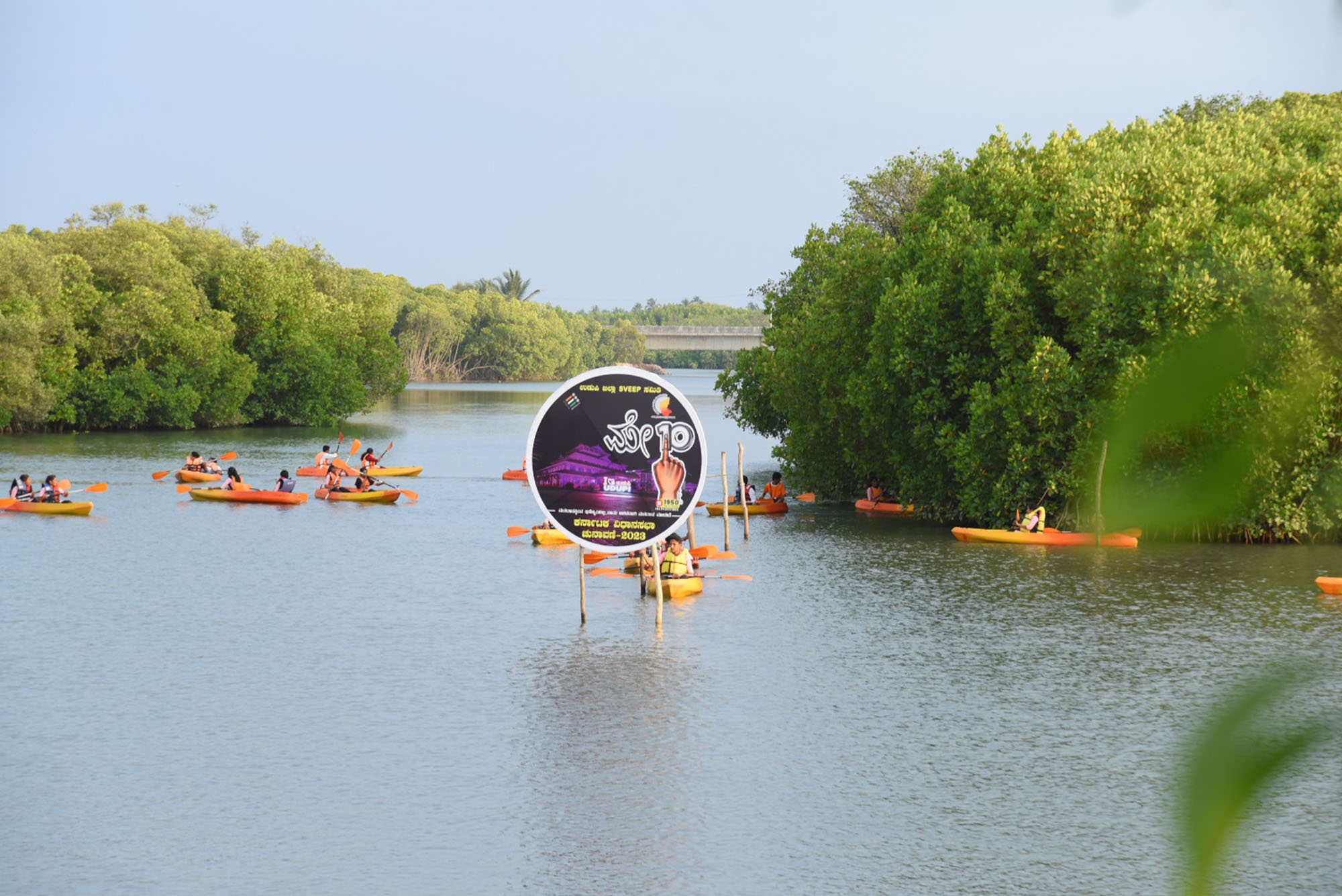 ಮ್ಯಾಂಗ್ರೋವ್ ವನದ ಮಧ್ಯೆ ಕಯಾಕ್ ಮೂಲಕ ಮತದಾನ ಜಾಗೃತಿ
