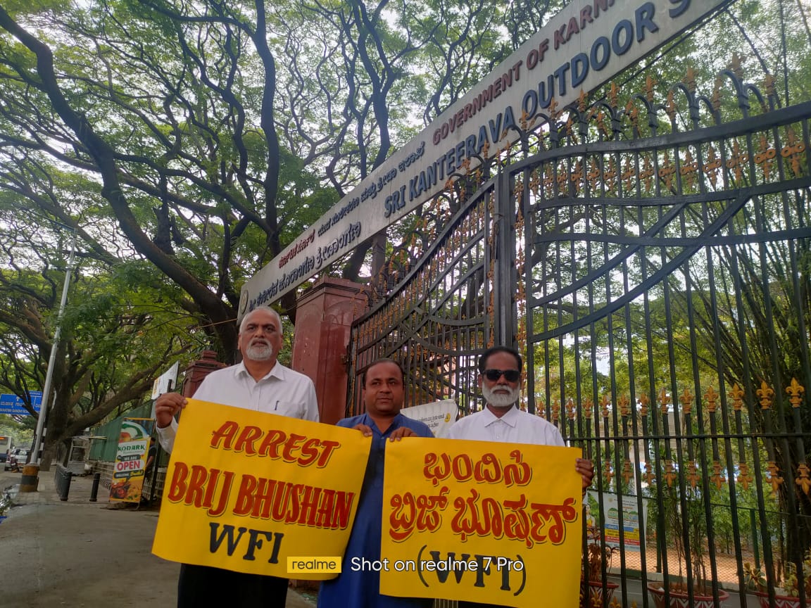 ಸರಕಾರ ಮಹಿಳೆಯರ ಮೇಲೆ ದೌರ್ಜನ್ಯ ಎಸಗುವವರ ಪರವಾಗಿ ನಿಂತಿದೆ ಎಂದು ಆರೋಪಿಸಿ ಬುಧವಾರ ಬೆಂಗಳೂರು ನಗರದ ಕಂಠೀರವ ಕ್ರೀಡಾಂಗಣದ ಮುಖ್ಯದ್ವಾರದಲ್ಲಿ ಹಿರಿಯ ಹೋರಾಟಗಾರ ಟಿ.ನರಸಿಂಹಮೂರ್ತಿ, ಸಾಮಾಜಿಕ ಕಾರ್ಯಕರ್ತರಾದ ಎಚ್.ಎಂ.ವೆಂಕಟೇಶ್, ಮಲ್ಲು ಕುಂಬಾರ್, ಸುರೇಶ್ ಸೇರಿದಂತೆ ಹಲವರು ಪ್ರತಿಭಟಿಸಿದರು.