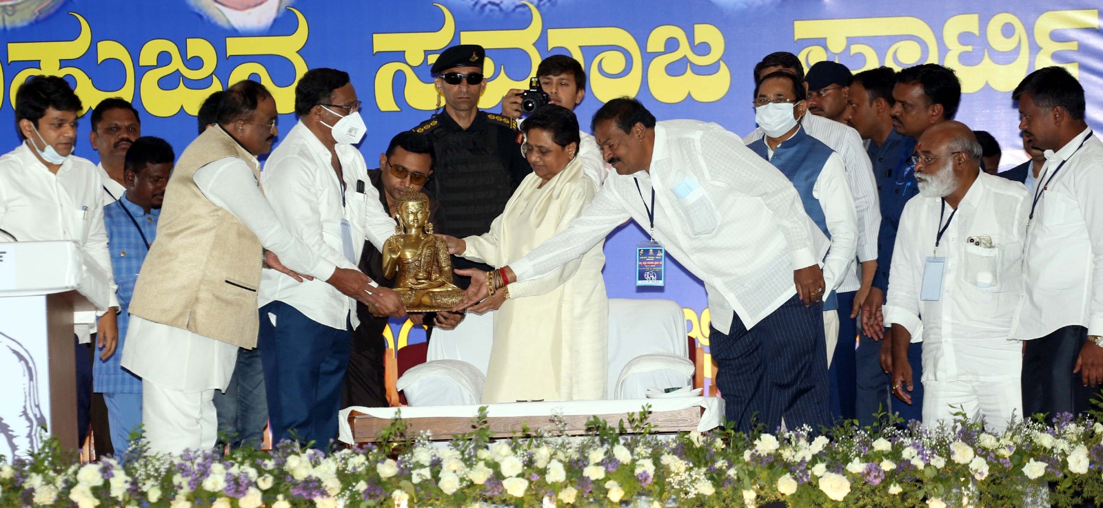 ಬಿಎಸ್ಪಿ ರಾಷ್ಟ್ರೀಯ ಪ್ರಧಾನ ಕಾರ್ಯದರ್ಶಿ ಅಶೋಕ್ ಸಿದ್ದಾರ್ಥ, ಬಿಎಸ್ಪಿ ರಾಜ್ಯ ಸಂಚಾಲಕ ಎಂ.ಗೋಪಿನಾಥ್, ರಾಜ್ಯ ಪ್ರಧಾನ ಕಾರ್ಯದರ್ಶಿ ಆರ್.ಮುನಿಯಪ್ಪ, ಬಿಎಸ್ಪಿ ಅಭ್ಯರ್ಥಿಗಳಾದ ಅಖಂಡ ಶ್ರೀನಿವಾಸಮೂರ್ತಿ, ಎ.ಜೆ.ಖಾನ್, ಬೆಂಬಲಿತ ಅಭ್ಯರ್ಥಿ ಕೃಷ್ಣಯ್ಯ ಶೆಟ್ಟಿ ಸೇರಿದಂತೆ ಪ್ರಮುಖರು ಉಪಸ್ಥಿತರಿದ್ದರು.