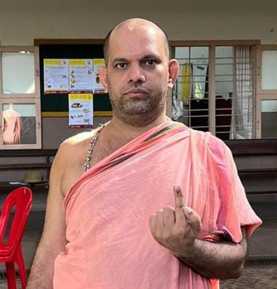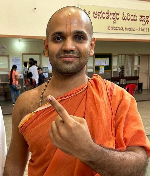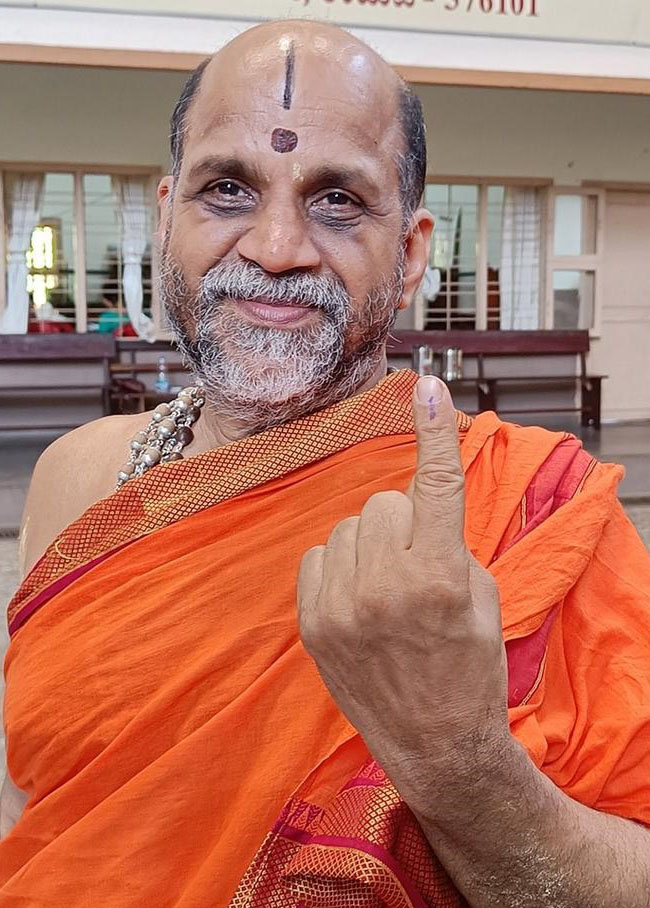 ಭಾವಿ ಪರ್ಯಾಯ ಪುತ್ತಿಗೆ ಮಠಾಧೀಶ ಶ್ರೀಸುಗುಣೇಂದ್ರ ತೀರ್ಥ ಸ್ವಾಮೀಜಿ, ಕಾಣಿಯೂರು ಮಠಾಧೀಶ ಶ್ರೀವಿದ್ಯಾವಲ್ಲಭ ತೀರ್ಥ ಸ್ವಾಮೀಜಿ ಮತ್ತು ಸೋದೆ ಮಠಾಧೀಶ ಶ್ರೀವಿಶ್ವವಲ್ಲಭ ತೀರ್ಥ ಸ್ವಾಮೀಜಿ ಉಡುಪಿ ಪಣಿಯಾಡಿ ಶ್ರೀಅನಂತೇಶ್ವರ ಹಿರಿಯ ಪ್ರಾಥಮಿಕ ಶಾಲೆಯ ಮತಗಟ್ಟೆಯಲ್ಲಿ ಮತ ಚಲಾಯಿಸಿದರು.
