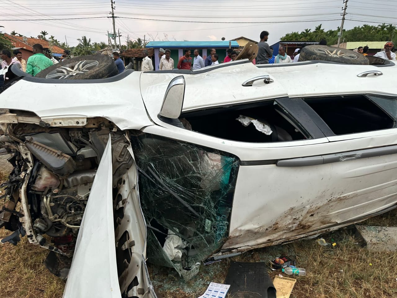 ಚೆನ್ನಗಿರಿ ತಾಲೂಕಿನ ಹೆಬ್ಬಲಗೆರೆಯ ರಾಷ್ಟ್ರೀಯ ಹೆದ್ದಾರಿ ಬಳಿ ಘಟನೆ ನಡೆದಿದ್ದು, ಮಳೆ ಬರುತ್ತಿದ್ದ ಸಮಯದಲ್ಲಿ ಚಾಲಕ ಬ್ರೇಕ್ ಹಾಕಿದಾಗ ನಿಯಂತ್ರಣ ತಪ್ಪಿ, ರಸ್ತೆ ವಿಭಜಕಕ್ಕೆ ಗುದ್ದಿದ ಕಾರು ಪಲ್ಟಿಯಾಗಿದೆ. ಈ ವೇಳೆ ಅವರೆಲ್ಲ ಬದುಕುಳಿದಿದ್ದೇ ಹೆಚ್ಚು ಎಂದು ಸ್ಥಳೀಯರು ಹೇಳಿದ್ದಾರೆ.