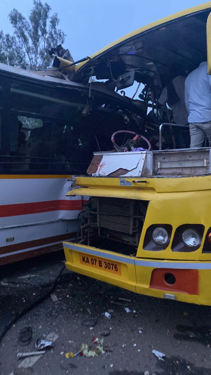 ಶಿವಮೊಗ್ಗ | 2 ಬಸ್ಗಳ ನಡುವೆ ಮುಖಾಮುಖಿ ಢಿಕ್ಕಿ: ಇಬ್ಬರು ಸ್ಥಳದಲ್ಲೇ ಮೃತ್ಯು, ಮೂವರು ಗಂಭೀರ