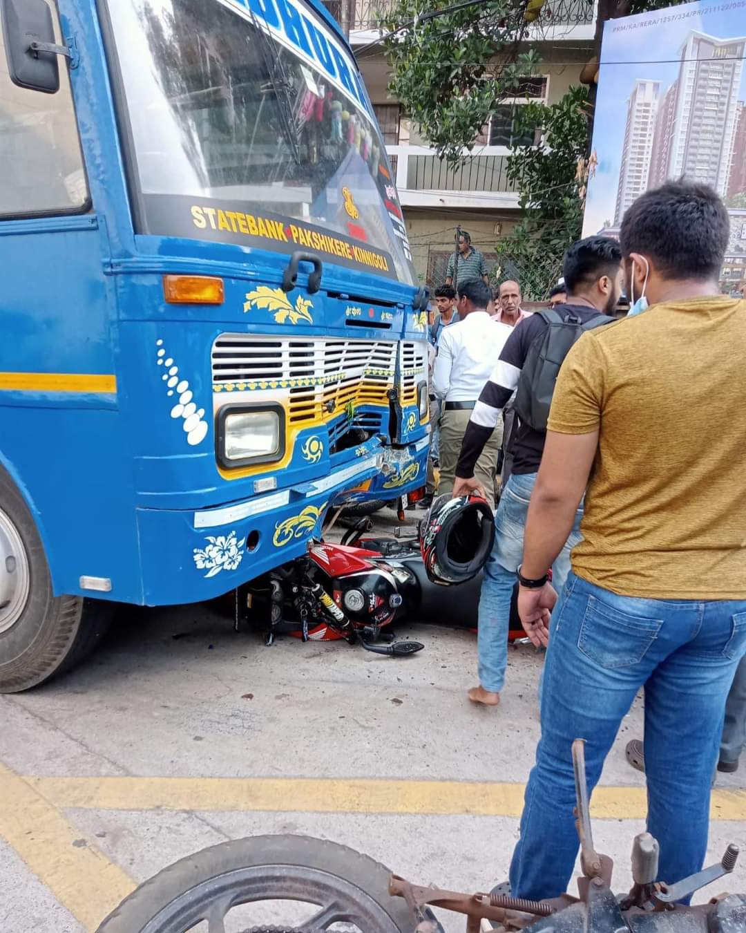 ಬಾವುಟಗುಡ್ಡೆಯಿಂದ ಜ್ಯೋತಿ ವೃತ್ತದ ಕಡೆಗೆ ತೆರಳುತ್ತಿದ್ದ ಬಸ್ ಅಕ್ಕಪಕ್ಕದಲ್ಲಿದ್ದ ಕಾರು, ಬೈಕ್ಗಳಿಗೆ ಢಿಕ್ಕಿ ಹೊಡೆಯಿತು ಎನ್ನಲಾಗಿದೆ. ಒಂದು ಬೈಕ್ ಬಸ್ನಡಿಗೆ ಬಿದ್ದಿದ್ದು ಸವಾರ ಅಪಾಯದಿಂದ ಪಾರಾಗಿದ್ದಾರೆ.