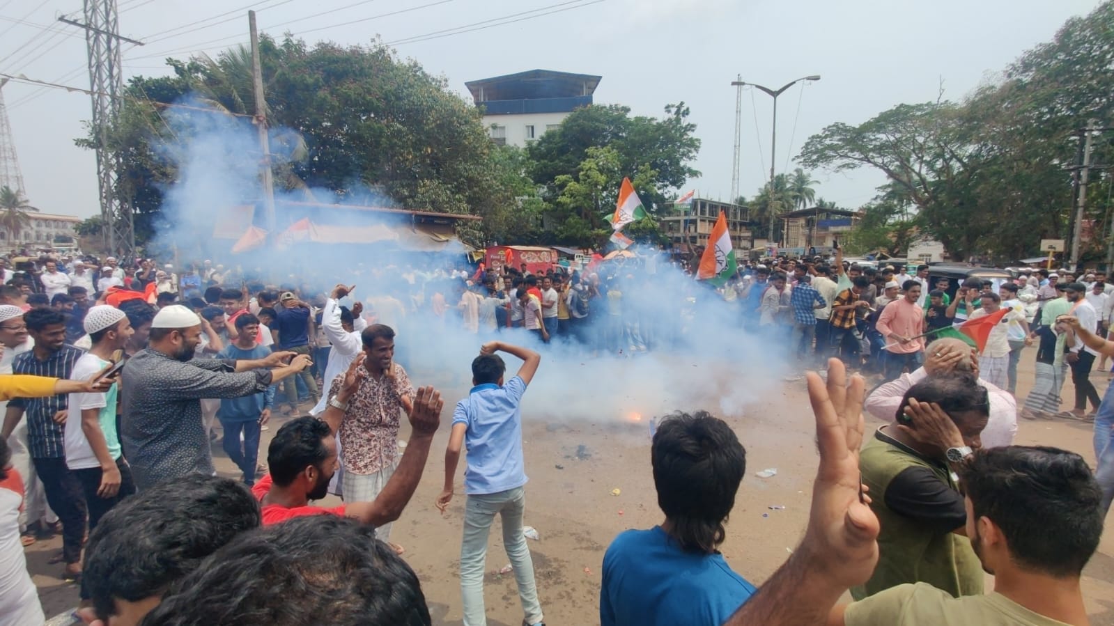 ಭಟ್ಕಳದಲ್ಲಿ ವಿಜಯೋತ್ಸವ : ಮಾಂಕಾಳ ವೈದ್ಯರ ಗೆಲುವು ಘೋಷಣೆಯಾಗುತ್ತಿದ್ದಂತೆ ಭಟ್ಕಳದ ಶಮ್ಸುದ್ದೀನ್ ವೃತ್ತದಲ್ಲಿ ಜನರು ಪಟಾಕಿ ಸಿಡಿಸಿ ಸಿಹಿ ಹಂಚುವುದರ ಮೂಲಕ ವಿಜಯೋತ್ಸವ ಆಚರಿಸಿದರು. ಹೊನ್ನಾವರದಿಂದ ಭಟ್ಕಳದ ವರೆಗೆ ಮೆರವಣೆಗೆ ನಡೆಸಿದ ಮಾಂಕಾಳ್ ಅಭಿಮಾನಿಗಳು ಭಟ್ಕಳದ ಶಮ್ಸುದ್ದೀನ್ ವೃತ್ತದ ಮೂಲಕ ಬೃಹತ್ ಮೆರವಣೆಗೆ ನಡೆಸಿದರು.