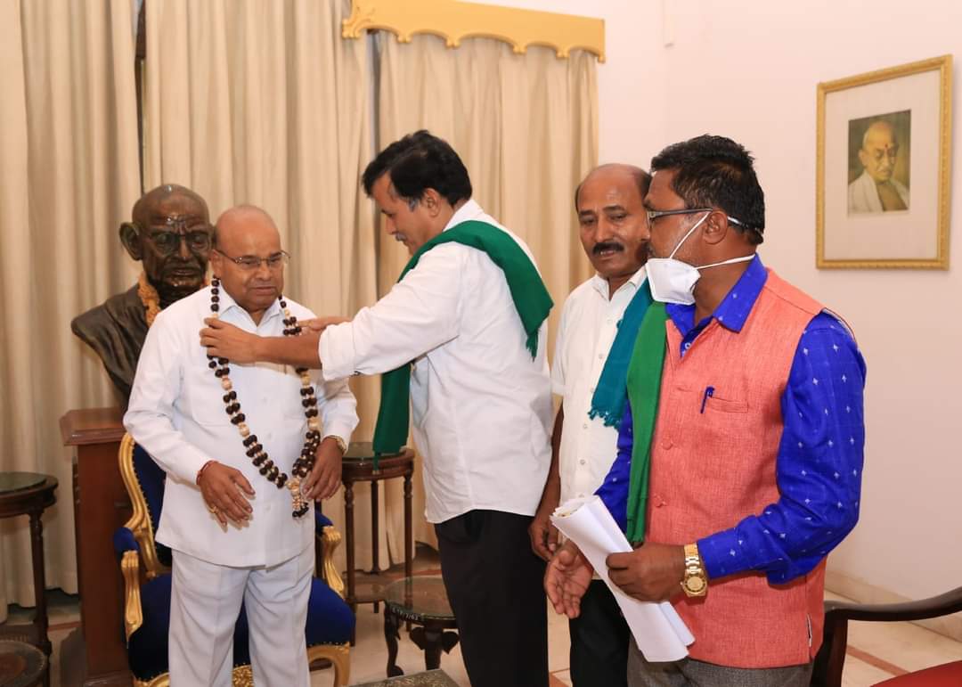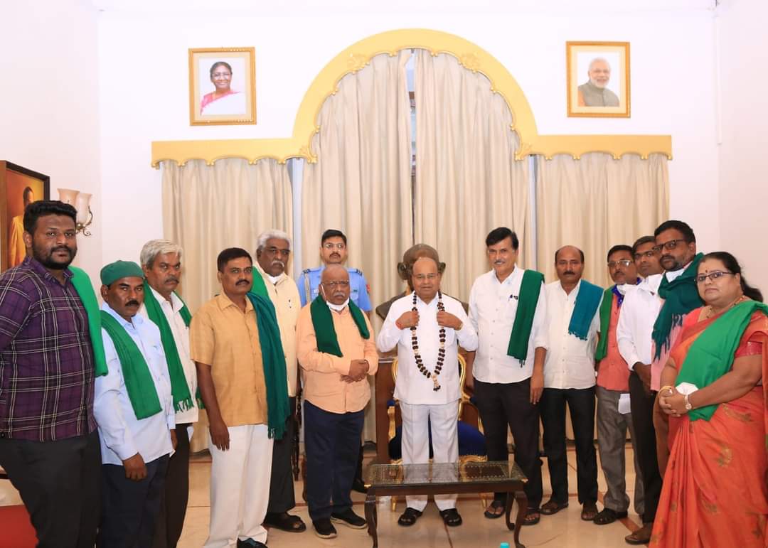 ರಾಜ್ಯ ರೈತ ಸಂಘಟನೆಗಳ ಒಕ್ಕೂಟದ ರಾಜ್ಯಾಧ್ಯಕ್ಷ ಕುರುಬೂರು ಶಾಂತಕುಮಾರ್ ನೇತೃತ್ವದಲ್ಲಿ ರೈತ ಮುಖಂಡರು ಮಂಗಳವಾರ ರಾಜ್ಯಪಾಲರನ್ನು ಭೇಟಿಯಾಗಿ ಮನವಿ ಪತ್ರ ಸಲ್ಲಿಸಿದರು. ಜತೆಗೆ ರೈತರ ಹಲವು ಬೇಡಿಕೆಗಳನ್ನು ಈಡೇರಿಸುವಂತೆಯೂ ಮನವಿ ಮಾಡಿದರು