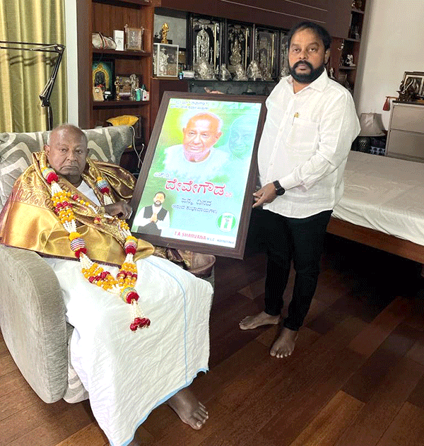 ಬೆಂಗಳೂರು, ಮೇ 18: ಮಾಜಿ ಪ್ರಧಾನ ಮಂತ್ರಿ ಎಚ್.ಡಿ.ದೇವೇಗೌಡರ 91ನೇ ಹುಟ್ಟುಹಬ್ಬದ ಪ್ರಯುಕ್ತ ರಾಜ್ಯ ವಿಧಾನ ಪರಿಷತ್ ಸದಸ್ಯ ಟಿ.ಎ.ಶರವಣ ಅವರು ಇಂದು ಪದ್ಮನಾಭ ನಗರದಲ್ಲಿರುವ ದೇವೇಗೌಡರ ನಿವಾಸಕ್ಕೆ ಭೇಟಿ ನೀಡಿ ಶುಭ ಕೋರಿದರು.