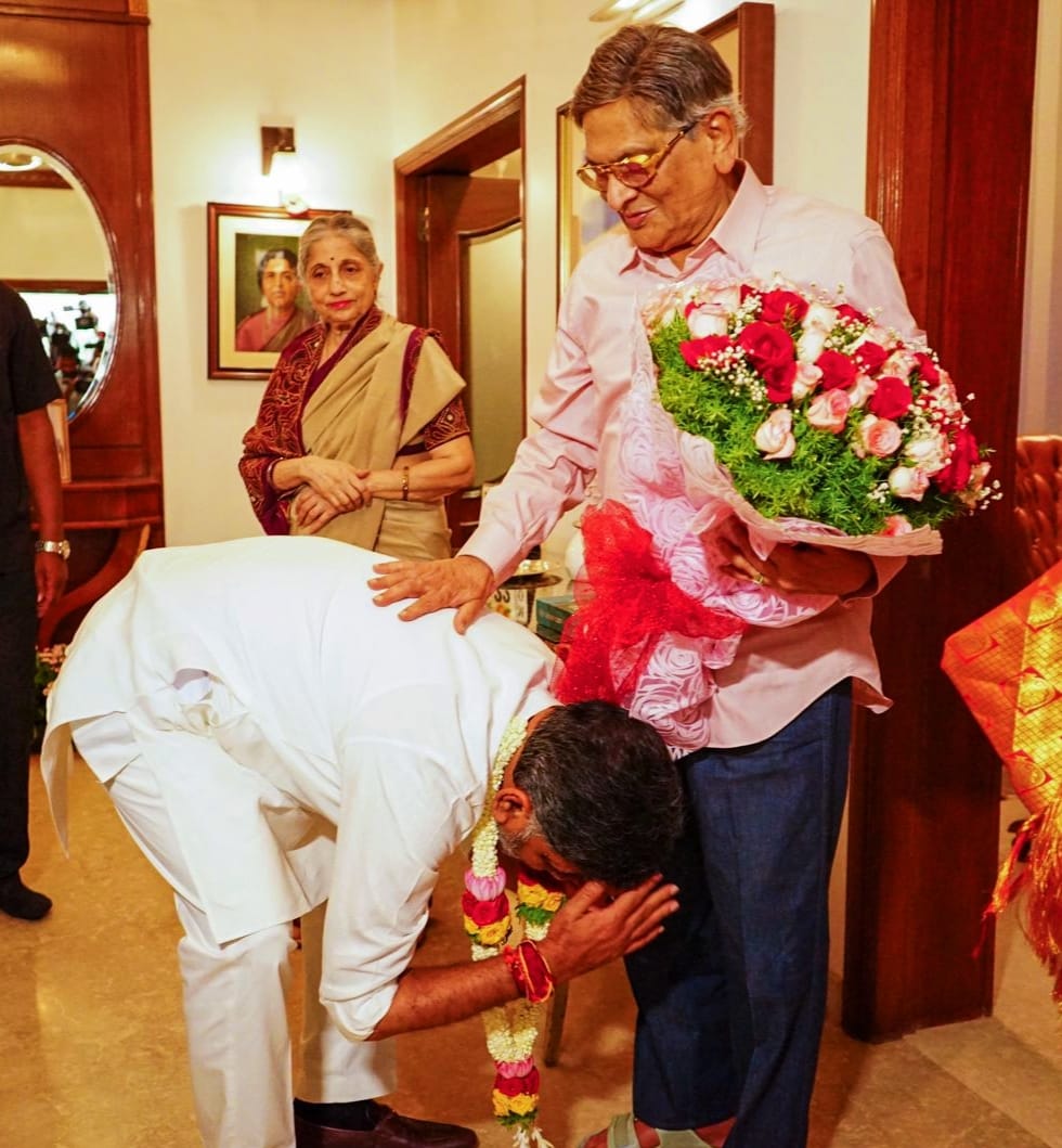 ಬೆಂಗಳೂರು: ಮಾಜಿ ಮುಖ್ಯಮಂತ್ರಿಗಳು ಹಾಗೂ ಹಿರಿಯ ನಾಯಕರಾದ ಶ್ರೀ ಎಸ್.ಎಂ. ಕೃಷ್ಣ ಅವರನ್ನು ಉಪ ಮುಖ್ಯಮಂತ್ರಿ ಡಿಕೆ ಶಿವಕುಮಾರ್ ಇಂದು ಭೇಟಿನೀಡಿದರು.
