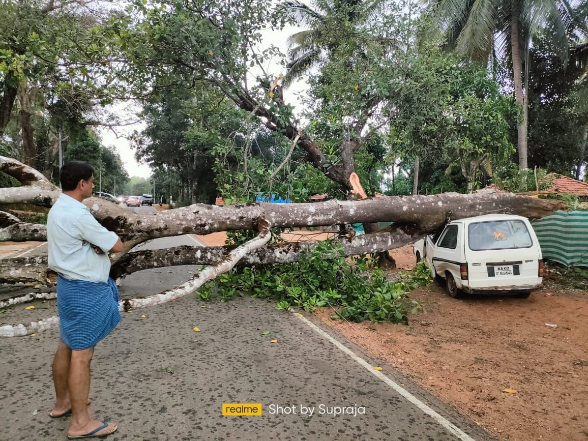 ಶೃಂಗೇರಿ | ಭಾರೀ ಗಾಳಿ, ಮಳೆಗೆ ಕಾರಿನ ಮೇಲೆ ಬಿದ್ದ ಬೃಹತ್ ಗಾತ್ರದ ಮರ, ತಪ್ಪಿದ ಅನಾಹುತ