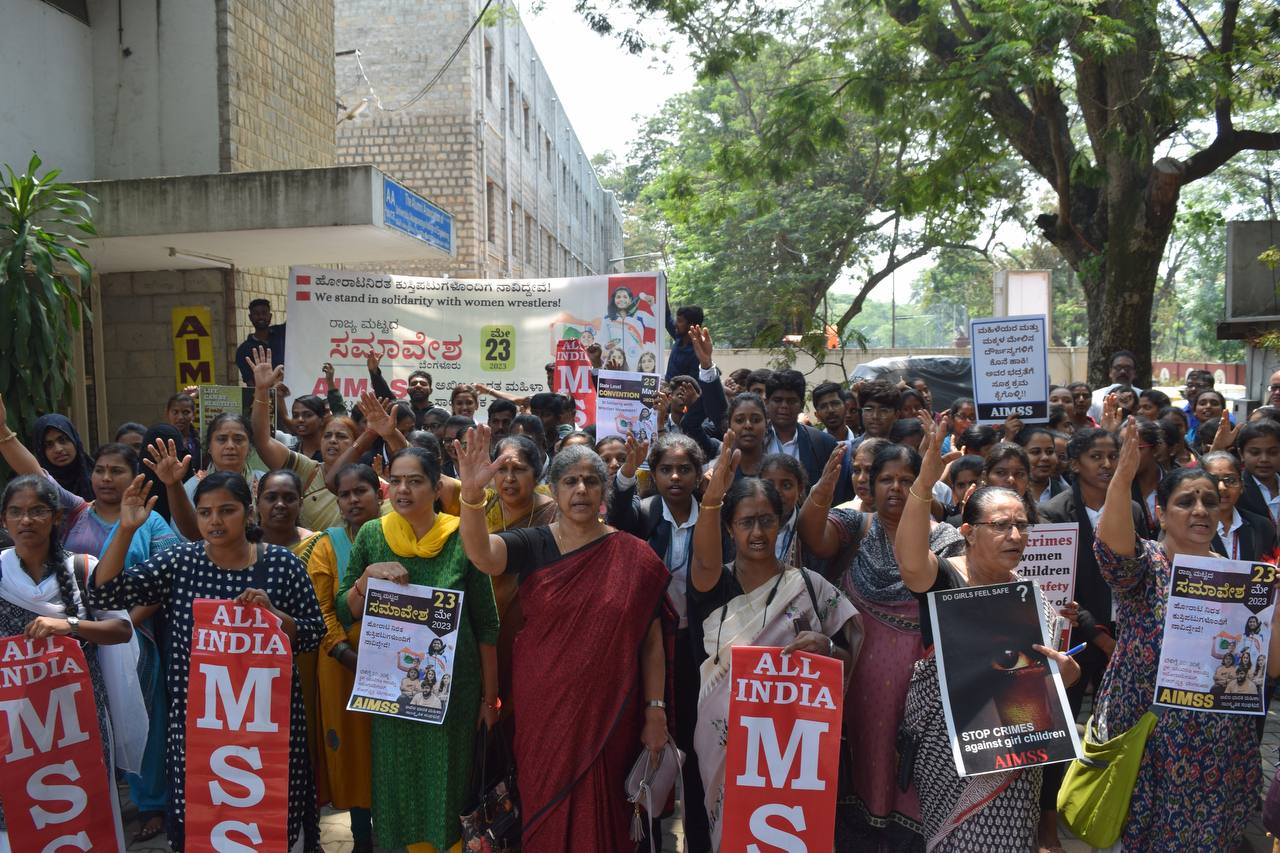 ಎಐಎಂಎಸ್ಎಸ್ ರಾಜ್ಯ ಅಧ್ಯಕ್ಷೆ ಅಪರ್ಣ ಬಿ.ಆರ್. ಮಾತನಾಡಿ, ಈ ಪ್ರಕರಣದ ಆರೋಪಿ ಬ್ರಿಜ್ ಭೂಷನ್ ಶರಣ್ ಸಿಂಗ್ ನನ್ನು ಬಂಧಿಸಬೇಕು ಎಂದು ಎಷ್ಟೇ ಒತ್ತಾಯಿಸಿದರೂ ಸರಕಾರವಾಗಲಿ, ಪೊಲೀಸ್ ವ್ಯವಸ್ಥೆಯಾಗಲಿ ಅದಕ್ಕೆ ಕಿವಿ ಕೊಡಲಿಲ್ಲ. ಸರಕಾರದ ಇಂತಹ ಧೋರಣೆ ಹೊಸದೇನಲ್ಲ. ಈಗಾಗಲೇ ಉನ್ನಾವೋ, ಹತ್ರಾಸ್ ಮತ್ತು ಬಿಲ್ಕಿಸ್ ಬಾನೋ ಪ್ರಕರಣಗಳಲ್ಲಿ ಸರಕಾರ ಅಪರಾಧಿಗಳ ರಕ್ಷಣೆಗೆ ಪಣತೊಟ್ಟು ನಿಂತಿದ್ದು ಸಾಬೀತಾಗಿದೆ. ಇಂತಹ ವಾತಾವರಣದಲ್ಲಿ ದುಷ್ಟ ಶಕ್ತಿಗಳ ವಿರುದ್ಧ ಹೆಣ್ಣು ಮಕ್ಕಳು ಧೈರ್ಯದಿಂದ ಧ್ವನಿ ಎತ್ತುತ್ತಿರುವುದು ಆಶಾದಾಯಕ ವಿಷಯ ಎಂದು ತಿಳಿಸಿದರು.