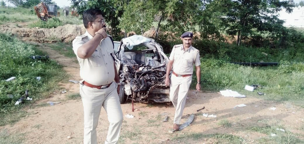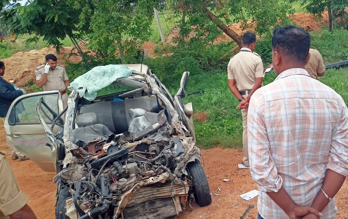 ಅಪಘಾತದ ತೀವ್ರತೆಗೆ ಕಾರಿನ ಮುಂಭಾಗ ಸಂಪೂರ್ಣ ಜಖಂಗೊಂಡಿದೆ.