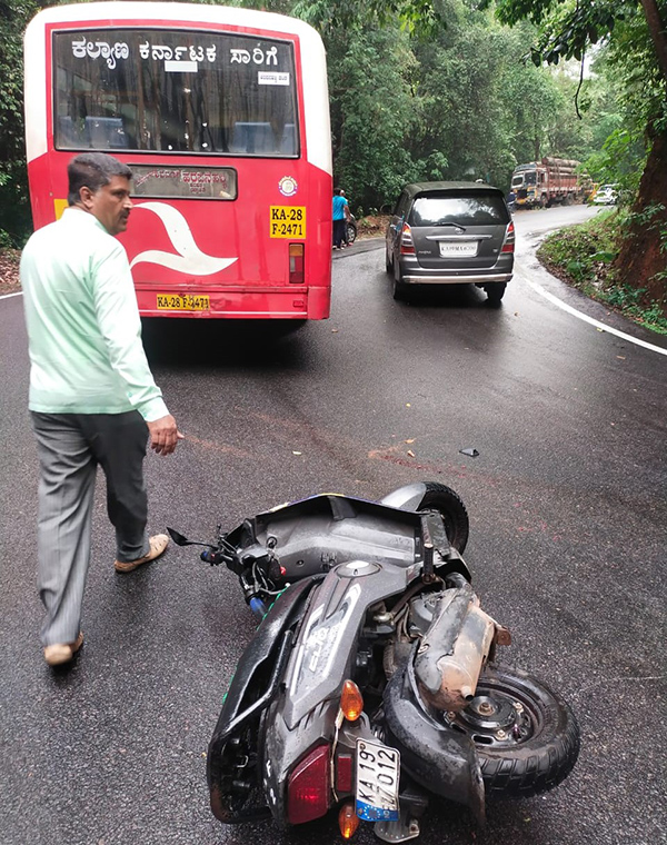 ಬೆಳ್ತಂಗಡಿ: ಚಾರ್ಮಾಡಿ ಘಾಟಿಯಲ್ಲಿ ಬಸ್ ಮತ್ತು ದ್ವಿಚಕ್ರ ವಾಹನ ಢಿಕ್ಕಿ ಹೊಡೆದ ಪರಿಣಾಮ ದ್ವಿಚಕ್ರ ವಾಹನ ಸವಾರ ಸ್ಥಳದಲ್ಲೇ ಮೃತಪಟ್ಟ ಘಟನೆ ಸೋಮವಾರ ಸಂಜೆ ಸಂಭವಿಸಿದೆ.