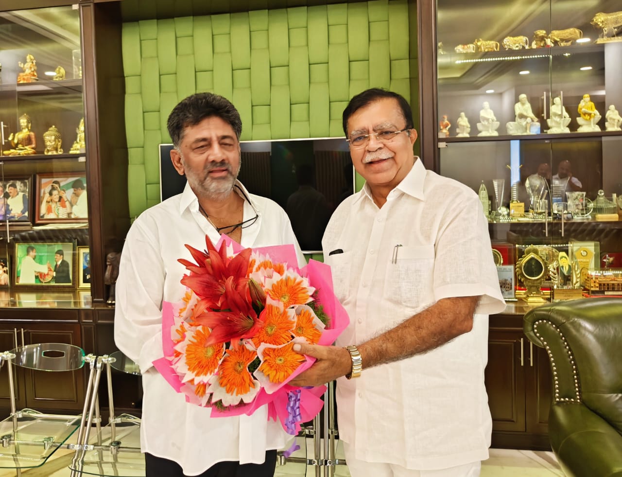 ಬೆಂಗಳೂರು: ಸಹಕಾರ ಸಚಿವ ಕೆ ಎನ್ ರಾಜಣ್ಣ ಅವರು ಕೆಪಿಸಿಸಿ ಅಧ್ಯಕ್ಷ, ಉಪ ಮುಖ್ಯಮಂತ್ರಿ ಡಿ ಕೆ ಶಿವಕುಮಾರ್ ಅವರನ್ನು ಸದಾಶಿವನಗರದಲ್ಲಿ ಅವರ ನಿವಾಸದಲ್ಲಿ ಮಂಗಳವಾರ ಭೇಟಿ ಮಾಡಿ ಸಮಾಲೋಚನೆ ನಡೆಸಿದರು.