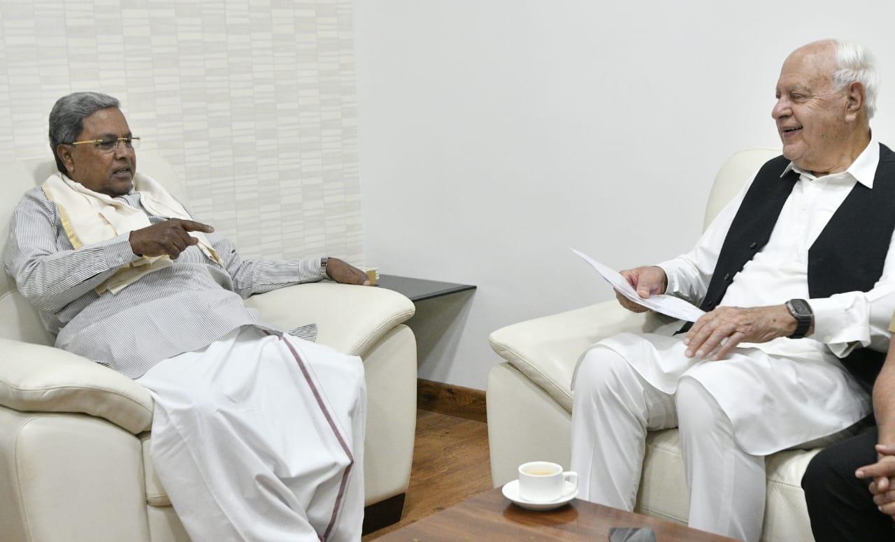 ಮುಖ್ಯಮಂತ್ರಿ ಸಿದ್ದರಾಮಯ್ಯರನ್ನು ಭೇಟಿ ಮಾಡಿದ ಜಮ್ಮು ಕಾಶ್ಮೀರದ ಮಾಜಿ ಸಿಎಂ ಫಾರೂಕ್ ಅಬ್ದುಲ್ಲಾ