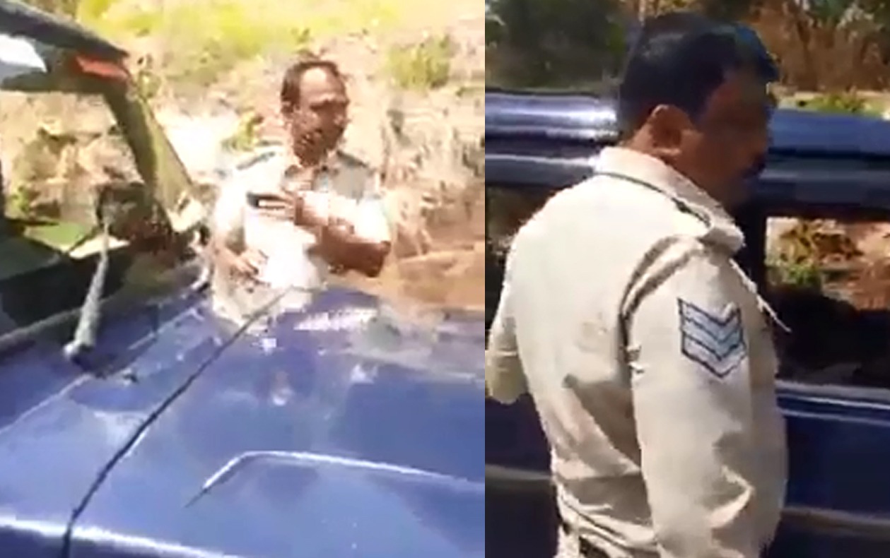 ಲಾರಿಗಳನ್ನ ತಡೆದು ಚಾಲಕರಿಂದ ಹಣ ವಸೂಲಿ ಮಾಡುತ್ತಿದ್ದ ದೃಶ್ಯ ಮೊಬೈಲ್ ನಲ್ಲಿ ಸೆರೆಯಾಗಿತ್ತು.