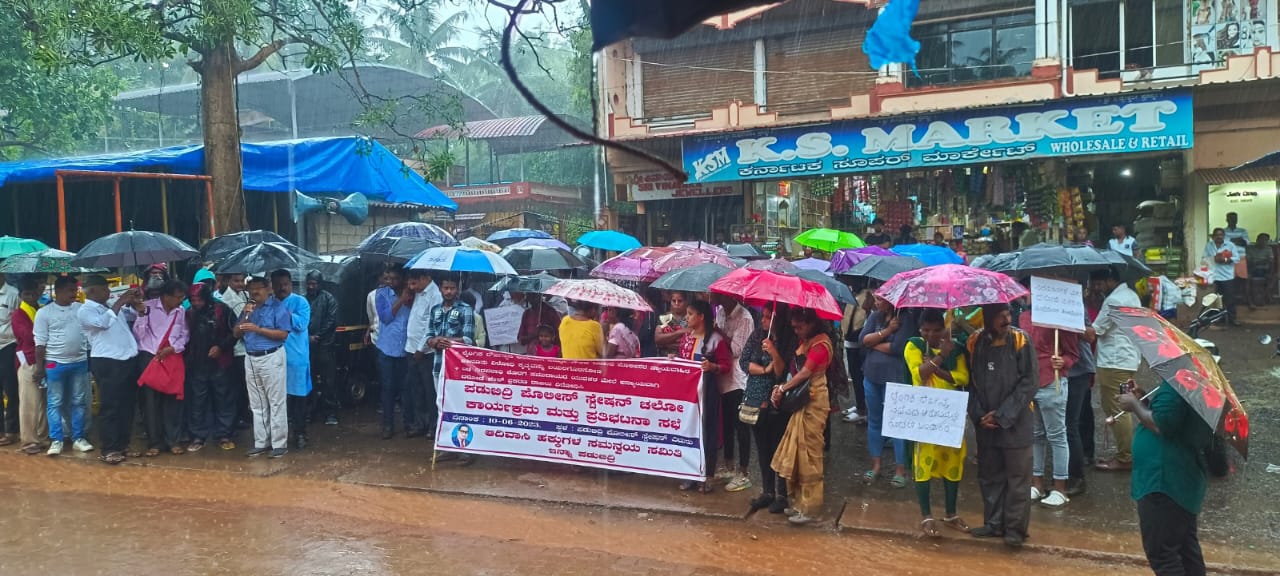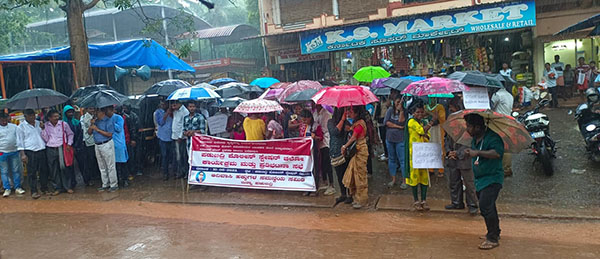 ಸುರಿಯುವ ಮಳೆಯಲ್ಲೂ ಪ್ರತಿಭಟನೆ: ಪ್ರತಿಭಟನೆಯ ವೇಳೆ ಜೋರಾಗಿ ಮಳೆ ಸುರಿದರೂ ಅಲ್ಲಿಂದ ಯಾರೂ ಕದಲದೆ ಪ್ರತಿಭಟನೆಯನ್ನು ಮುಂದುವರಿಸಲಾಯಿತು. ಛತ್ರಿಯನ್ನು ಹಿಡಿದುಕೊಂಡು ನಾಯಕರು ಭಾಷಣ ಮುಂದುವರಿಸುವ ಮೂಲಕ ಗಮನಸೆಳೆದರು.