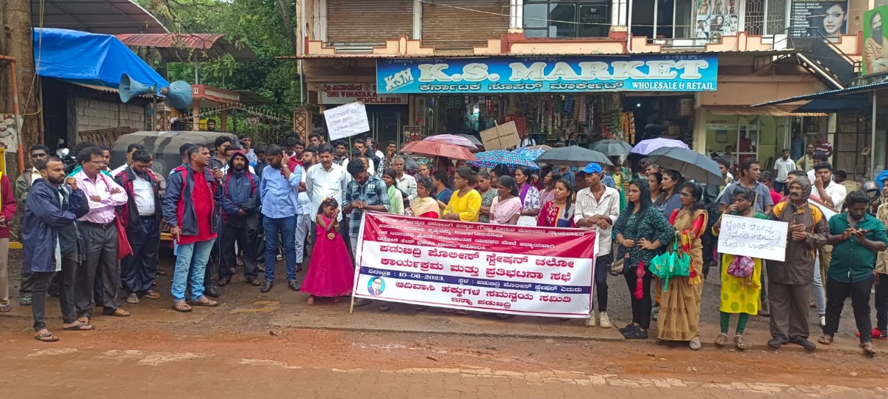 ದ.ಕ. ಮತ್ತು ಉಡುಪಿ ಜಿಲ್ಲಾ ಆದಿವಾಸಿ ಹಕ್ಕುಗಳ ಸಮನ್ವಯ ಸಮಿತಿಯು ಕರೆ ನೀಡಿದ್ದ ಪ್ರತಿಭಟನಾ ಸಭೆಗೂ ಮುನ್ನ ಪಡುಬಿದ್ರಿಯ ಕಾರ್ಕಳ ರಸ್ತೆಯಿಂದ ರಾಷ್ಟ್ರೀಯ ಹೆದ್ದಾರಿ ಮೂಲಕ ಸಾಗಿ ಪಡುಬಿದ್ರಿಯ ಮಾರುಕಟ್ಟೆ ಪ್ರದೇಶದಲ್ಲಿ ಪ್ರತಿಭಟನಾ ಸಭೆಯನ್ನು ನಡೆಸಲಾಯಿತು. ಈ ವೇಳೆ ಪೊಲೀಸರ ಹಾಗೂ ತಪ್ಪಿತಸ್ಥನ ವಿರುದ್ಧ ಪ್ರತಿಭಟನಾಕಾರರು ಘೋಷಣೆಗಳನ್ನು ಕೂಗಿದರು. ಪ್ರಕರಣದಲ್ಲಿ ನ್ಯಾಯ ಒದಗಿಸದಿದ್ದಲ್ಲಿ ರಾಜ್ಯಮಟ್ಟದಲ್ಲಿ ಹೋರಾಟಕ್ಕೆ ಮುಂದಿನ ದಿನಗಳಲ್ಲಿ ಮುಂದಾಗುವುದಾಗಿ ಪ್ರತಿಭಟನಾಕಾರರು ಎಚ್ಚರಿಸಿದರು.