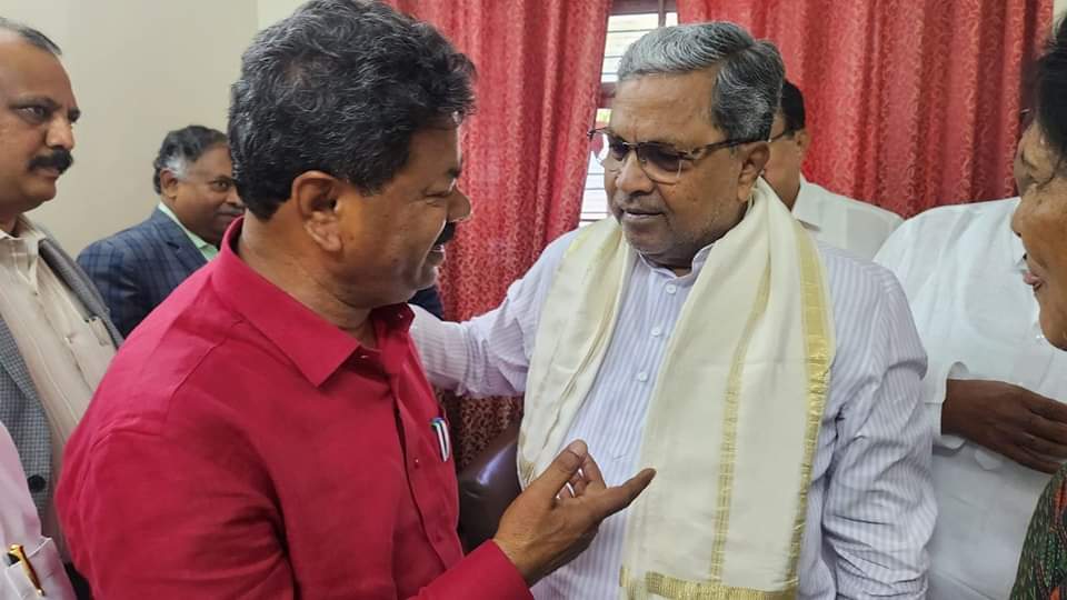 ಬುಧವಾರ ಸಿಎಂ ಗೃಹ ಕಚೇರಿ ಕೃಷ್ಣಾದಲ್ಲಿ ಎಂ.ಪಿ.ರೇಣುಕಾಚಾರ್ಯ ಸಿದ್ದರಾಮಯ್ಯ ಅವರನ್ನು ಭೇಟಿಯಾಗಿ ಹೂಗುಚ್ಛ ನೀಡಿ ಅಭಿನಂದಿಸಿದರು. ಈ ವೇಳೆ ಕೆಲ ಕಾಲ ಮಾತುಕತೆ ನಡೆಸಿದರು.
