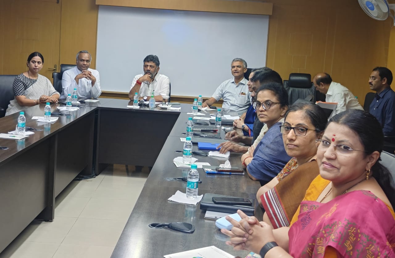 ಬೆಂಗಳೂರು, ಜೂ.16: 'ಗೃಹಲಕ್ಷ್ಮಿ' ಯೋಜನೆ ಜಾರಿ ಸಂಬಂಧ ಉಪ ಮುಖ್ಯಮಂತ್ರಿ ಡಿ.ಕೆ. ಶಿವಕುಮಾರ್ ಅವರು ಬೆಂಗಳೂರಿನಲ್ಲಿ ಶುಕ್ರವಾರ ಉನ್ನತ ಮಟ್ಟದ ಸಭೆ ನಡೆಸಿದರು.