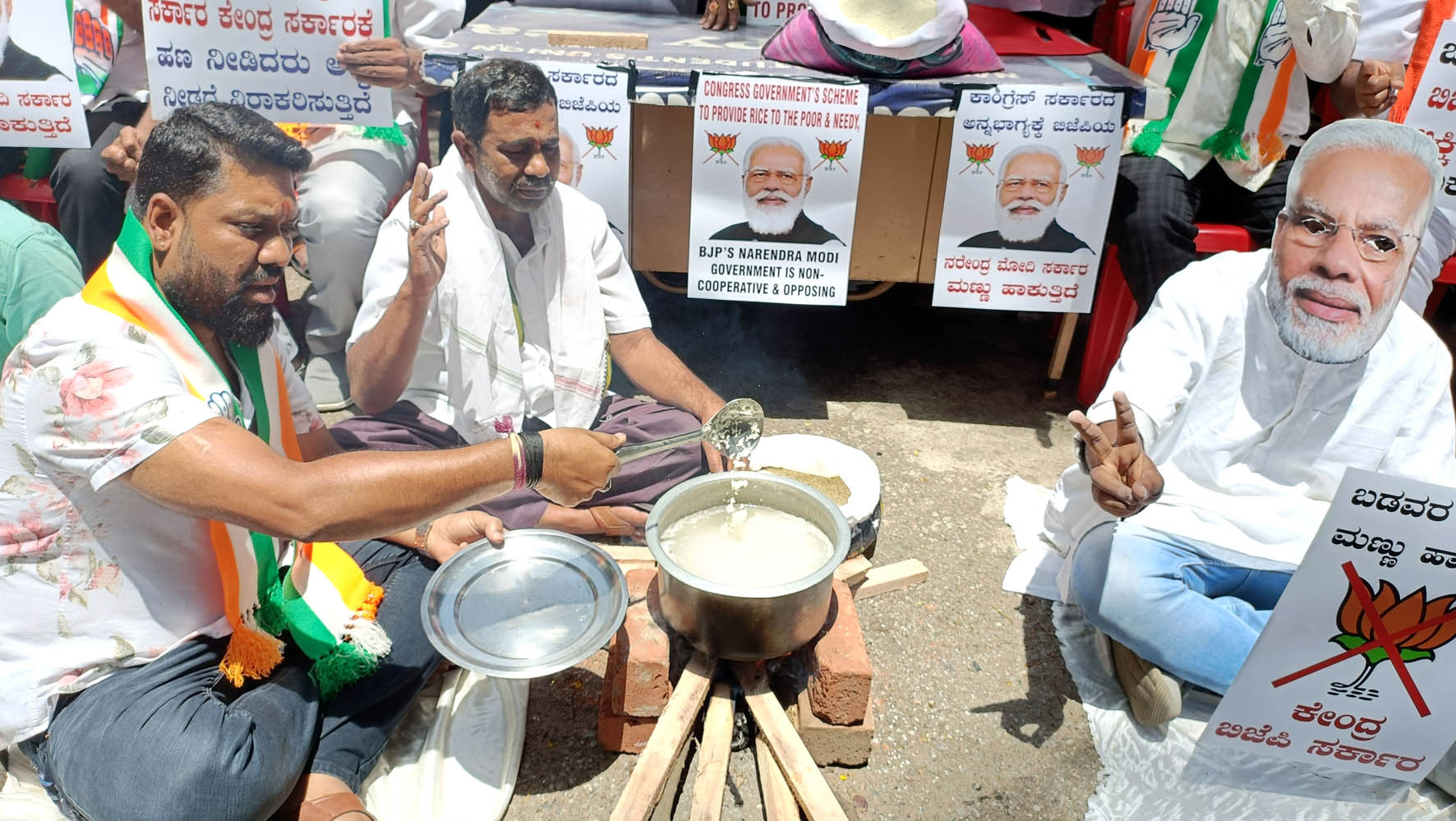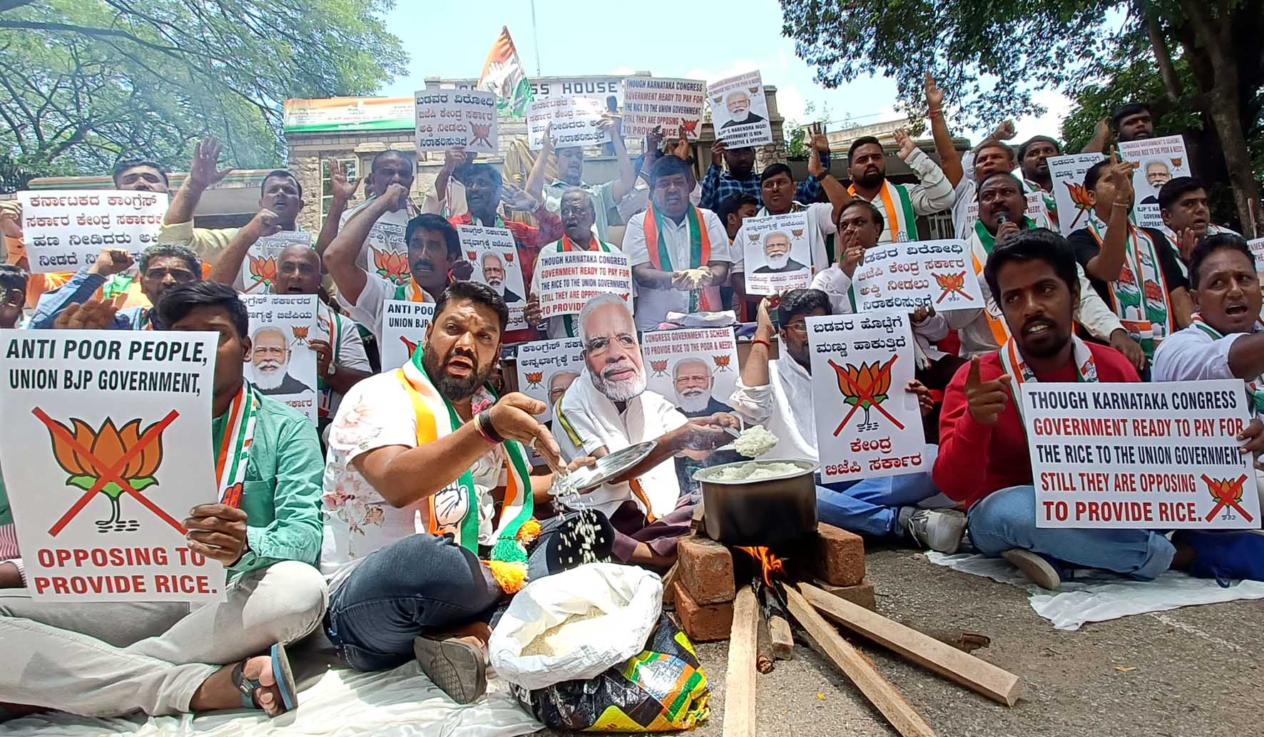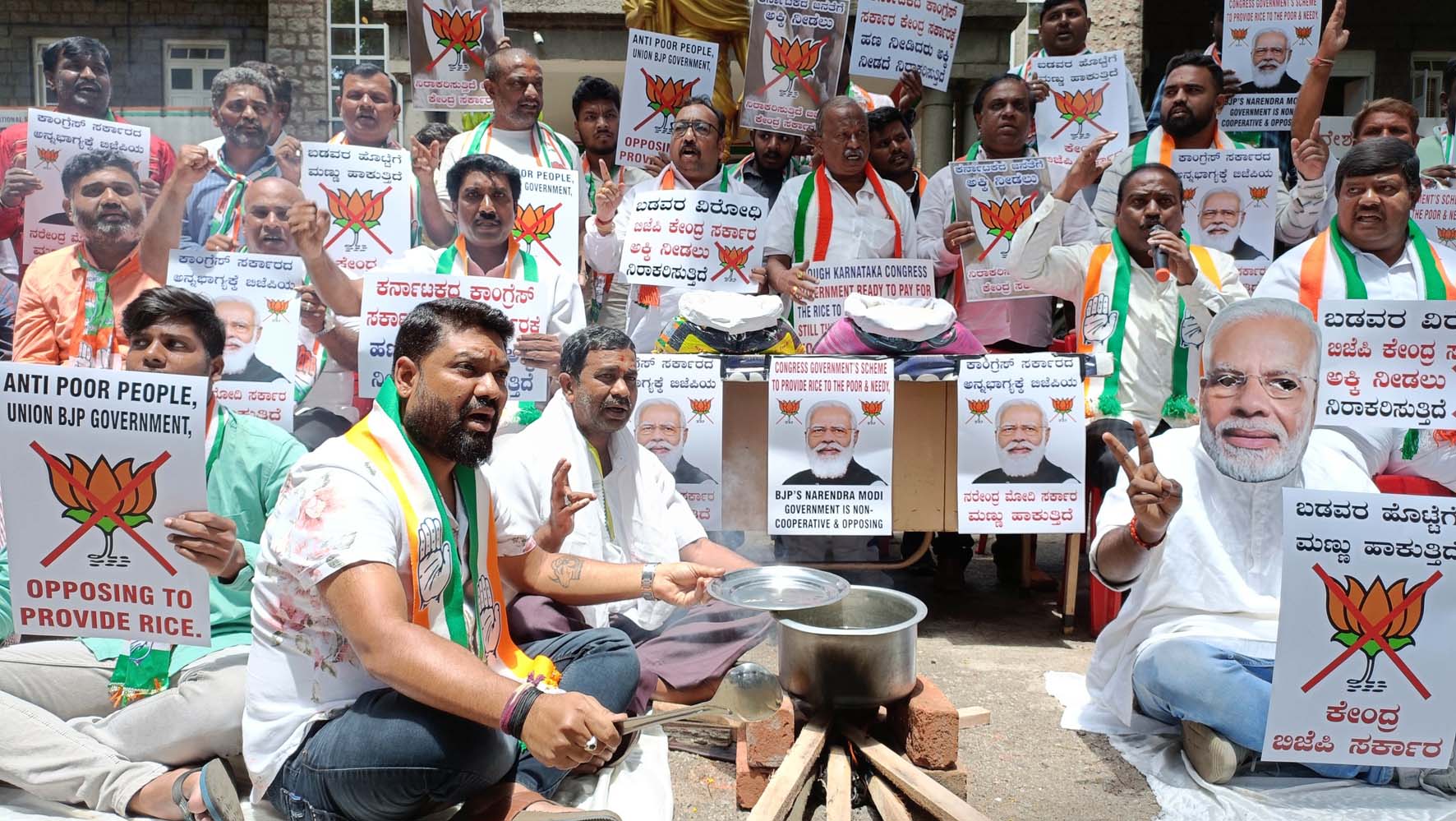 ಅನ್ನಭಾಗ್ಯ ಯೋಜನೆಗೆ ಅಕ್ಕಿ ಒದಗಿಸದ ಕೇಂದ್ರದ ವಿರುದ್ಧ ‘ಬೀದಿಯಲ್ಲಿ ಅನ್ನ ಬೇಯಿಸಿ’ ಕಾಂಗ್ರೆಸ್ ವಿಭಿನ್ನ ಪ್ರತಿಭಟನೆ