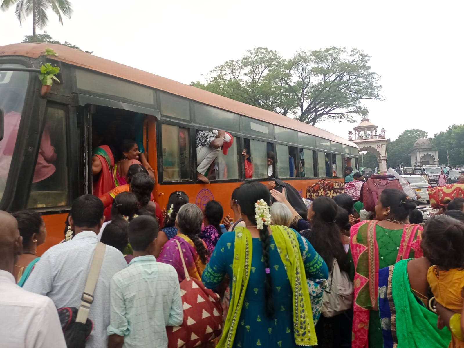 ಬಸ್ಸಿನೊಳಗೆ ಹತ್ತಲು ಜನರ ನೂಕು ನುಗ್ಗಲು ಕಂಡು ಬರುತ್ತಿದ್ದು, ಪ್ರಯಾಣಿಕರು ಪರಸ್ಪರ ಜಗಳ ಮಾಡಿಕೊಳ್ಳುವಂತಾಗಿದೆ. ಬಸ್ಸುಗಳ ಬಾಗಿಲು ಮೂಲಕ ಹತ್ತಲು ಸಾಧ್ಯವಾಗದೆ ಕಿಟಕಿಗಳ ಮೂಲಕವೂ ಬಸ್ಸಿನೊಳಗೆ ಪ್ರವೇಶಿಸಲು ಪ್ರಯತ್ನ ನಡೆಸುತ್ತಿರುವುದು ಕಂಡುಬಂತು.