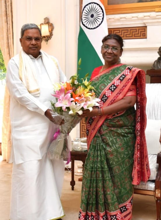ರಾಷ್ಟ್ರಪತಿ ದ್ರೌಪದಿ ಮುರ್ಮು ಭೇಟಿಯಾದ ಮುಖ್ಯಮಂತ್ರಿ ಸಿದ್ದರಾಮಯ್ಯ