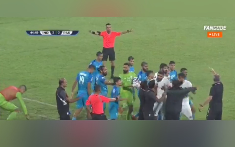 VIDEO- ಸ್ಯಾಫ್ ಫುಟ್ಬಾಲ್ ಚಾಂಪಿಯನ್ಶಿಪ್; ಕೋಚ್ ಸ್ಟಿಮಾಕ್ ಹುಡುಗಾಟದಿಂದ ಭಾರತ- ಪಾಕ್ ಆಟಗಾರರ ಹೊಡೆದಾಟ!