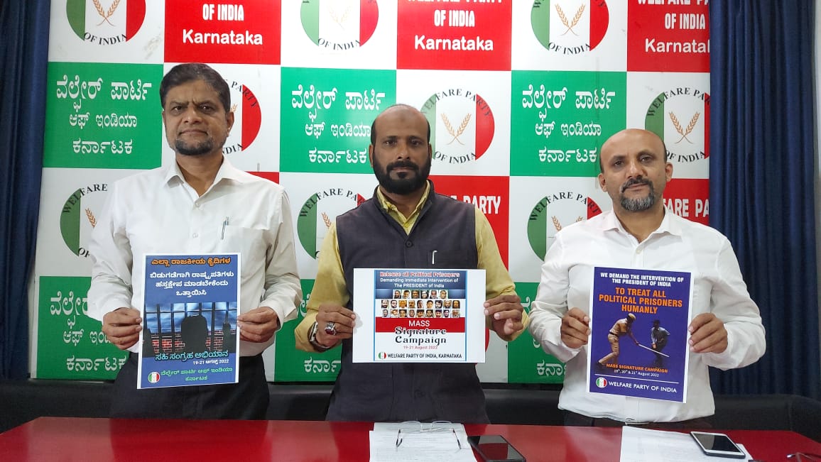 ಗುರುವಾರ ಶಿವಾಜಿನಗರದಲ್ಲಿರುವ ವೆಲ್ಫೇರ್ ಪಾರ್ಟಿ ಆಫ್ ಇಂಡಿಯಾ ರಾಜ್ಯ ಕಚೇರಿಯಲ್ಲಿ ಪತ್ರಿಕಾಗೋಷ್ಠಿ ಉದ್ದೇಶಿಸಿ ಮಾತನಾಡಿದ ಅವರು, ಈ ಅಭಿಯಾನದ ಅಂಗವಾಗಿ ಸಾರ್ವಜನಿಕರಿಂದ ಸಾಮೂಹಿಕ ಸಹಿಗಳನ್ನು ಸಂಗ್ರಹಿಸಲಾಗುವುದು, ಎಲ್ಲ ರಾಜಕೀಯ ಕೈದಿಗಳನ್ನು ಬಿಡುಗಡೆ ಮಾಡಲು ತಕ್ಷಣದ ಮಧ್ಯಸ್ಥಿಕೆಗೆ ಒತ್ತಾಯಿಸಿ ಸಹಿಗಳ ಜೊತೆಗೆ ಎಲ್ಲ ಜಿಲ್ಲೆಗಳಿಂದ ರಾಷ್ಟ್ರಪತಿಗೆ ಜ್ಞಾಪಕ ಪತ್ರವನ್ನು ಕಳುಹಿಸಲಾಗುವುದು ಎಂದರು.