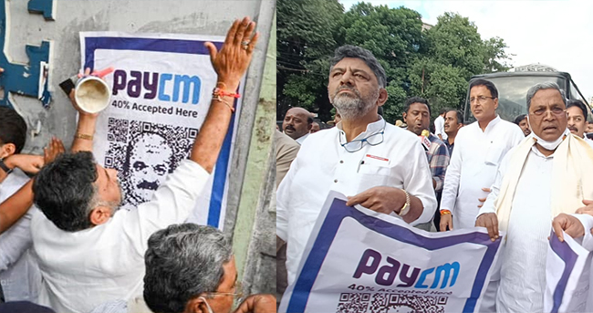 ಶುಕ್ರವಾರ ಇಲ್ಲಿನ ರೇಸ್ಕೋರ್ಸ್ ರಸ್ತೆಯಲ್ಲಿ ಜಮಾಯಿಸಿದ ವಿಧಾನಸಭೆಯ ವಿರೋಧ ಪಕ್ಷದ ನಾಯಕ ಸಿದ್ದರಾಮಯ್ಯ, ಪರಿಷತ್ತಿನ ವಿಪಕ್ಷ ನಾಯಕ ಬಿ.ಕೆ.ಹರಿಪ್ರಸಾದ್, ಎಐಸಿಸಿ ಪ್ರಧಾನ ಕಾರ್ಯದರ್ಶಿ ರಣದೀಪಸಿಂಗ್ ಸುರ್ಜೆವಾಲ, ಕೆಪಿಸಿಸಿ ಅಧ್ಯಕ್ಷ ಡಿ.ಕೆ.ಶಿವಕುಮಾರ್, ಪ್ರಚಾರ ಸಮಿತಿ ಅಧ್ಯಕ್ಷ ಎಂ.ಬಿ.ಪಾಟೀಲ್, ಕಾರ್ಯಾಧ್ಯಕ್ಷ ಸಲೀಂ ಅಹ್ಮದ್, ಶಾಸಕರಾದ ಪ್ರಿಯಾಂಕ್ ಖರ್ಗೆ ಸೇರಿದಂತೆ ಹಲವು ನಾಯಕರು ‘ಪೇ ಸಿಎಂ’ ಕ್ಯೂಆರ್ ಕೋಡ್ ಪೋಸ್ಟರ್ ಅಂಟಿಸಿದರು.