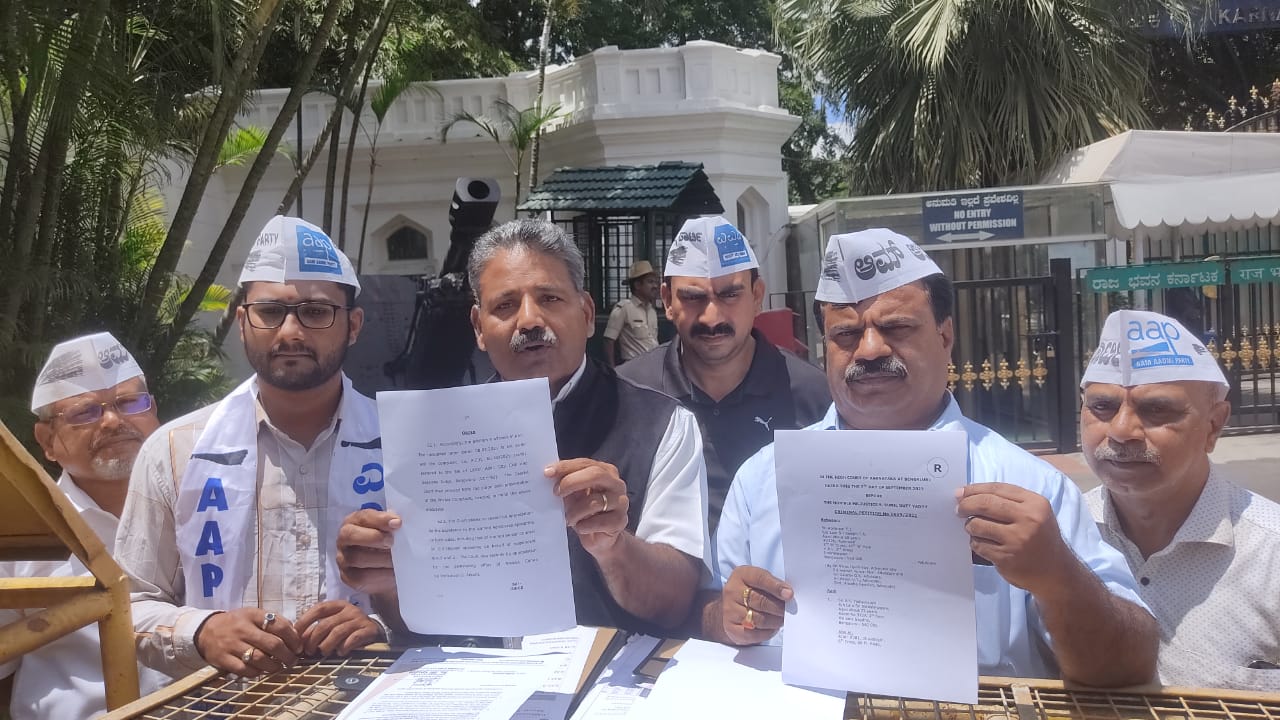 ಇದೇ ಸಂದರ್ಭದಲ್ಲಿ ಹಾಜರಿದ್ದ ಎಎಪಿ ಸಂಘಟನಾ ಕಾರ್ಯದರ್ಶಿ ಸುರೇಶ್ ರಾಥೋಡ್ ಮಾತನಾಡಿ, ‘ಕೋನದಾಸಪುರದಲ್ಲಿ ಬೆಂಗಳೂರು ಅಭಿವೃದ್ಧಿ ಪ್ರಾಧಿಕಾರವು 567 ಕೋಟಿ ರೂ.ವೆಚ್ಚದಲ್ಲಿ ಬಹುಮಹಡಿ ವಸತಿ ಸಮುಚ್ಚಯ ನಿರ್ಮಾಣ ಹಗರಣಕ್ಕೆ ಸಂಬಂಧಿಸಿ ಲೋಕಾಯುಕ್ತ ಕಚೇರಿಯಲ್ಲಿ ಸಾಕ್ಷಿ ಸಹಿತ ದೂರು ದಾಖಲಾಗಿದೆ. 29.5 ಕೋಟಿ ರೂ.ಲಂಚ ಪಡೆದಿರುವ ಆರೋಪದಲ್ಲಿ ಎಸ್.ಟಿ.ಸೋಮಶೇಖರ್, ಬಿ.ಎಸ್.ಯಡಿಯೂರಪ್ಪ, ಬಿ.ವೈ.ವಿಜಯೇಂದ್ರ ಸೇರಿದಂತೆ ಒಟ್ಟು ಒಂಬತ್ತು ಮಂದಿಯ ವಿರುದ್ಧ ಎಫ್ಐಆರ್ ದಾಖಲಾಗಿದೆ. ಇಂತಹ ಗಂಭೀರ ಆರೋಪ ಹೊತ್ತಿರುವ ಸೋಮಶೇಖರ್ ಸಚಿವ ಸ್ಥಾನದಲ್ಲಿ ಮುಂದುವರಿದಿರುವುದೇ ತಪ್ಪು. ಅದರಲ್ಲೂ ಅವರು ರಾಷ್ಟ್ರಪತಿಯವರ ಜೊತೆ ವೇದಿಕೆ ಹಂಚುಕೊಳ್ಳುವುದು ಇನ್ನೂ ದೊಡ್ಡ ತಪ್ಪು ಎಂದು ಹೇಳಿದರು. ನಿಯೋಗದಲ್ಲಿ ಮುಖಂಡರಾದ ಚನ್ನಪ್ಪಗೌಡ ನೆಲ್ಲೂರು, ವಿಶ್ವನಾಥ್, ವೇಣುಗೋಪಾಲ್, ಮಹೇಶ್ ಬಾಬು ಸೇರಿದಂತೆ ಇನ್ನಿತರರು ಹಾಜರಿದ್ದರು.