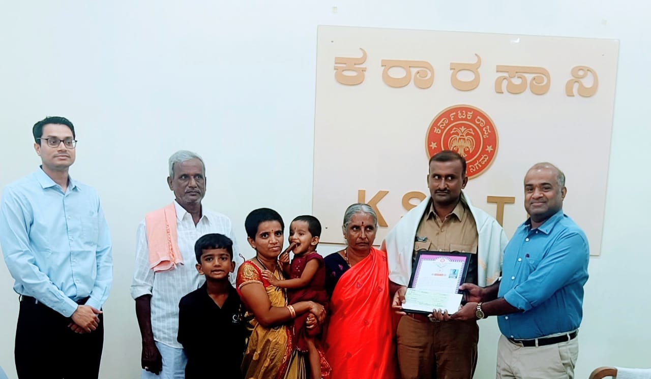 ಮಂಗಳವಾರ ಶಾಂತಿನಗರದಲ್ಲಿರುವ ಕೆಎಸ್ಸಾರ್ಟಿಸಿ ಕೇಂದ್ರ ಕಚೇರಿಯಲ್ಲಿ ಮಂಜುನಾಥ್ ಅವರ ಕುಟುಂಬದವರ ಸಮ್ಮಖದಲ್ಲಿ ಅವರನ್ನು ಸನ್ಮಾನಿಸಿ, 10 ಸಾವಿರ ರೂ.ನಗದು ಪುರಸ್ಕಾರ ಮತ್ತು ಅಭಿನಂದನಾ ಪತ್ರವನ್ನು ನೀಡಿದರು.