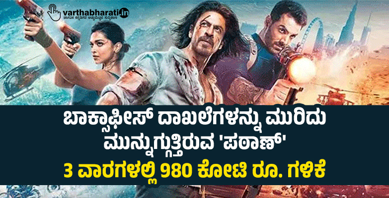 ಬಾಕ್ಸಾಫೀಸ್ ದಾಖಲೆಗಳನ್ನು ಮುರಿದು ಮುನ್ನುಗ್ಗುತ್ತಿರುವ 'ಪಠಾಣ್': 3 ವಾರಗಳಲ್ಲಿ 980 ಕೋಟಿ ರೂ. ಗಳಿಕೆ
