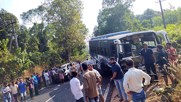 ಕಾರು ಹಾಗೂ ಬಸ್ಸು ಮುಖಾಮುಖಿ ಢಿಕ್ಕಿ ಹೊಡೆದಿದ್ದು ಕಾರು ಸಂಪೂರ್ಣವಾಗಿ ನಜ್ಜುಗುಜ್ಜಾಗಿದೆ. ಅಪಘಾತದ ತೀವ್ರತೆಗೆ ಕಾರಿನಲ್ಲಿದ್ದ ಇಬ್ಬರು ಸ್ಥಳದಲ್ಲೇ ಸಾವನ್ನಪ್ಪಿರುವುದಾಗಿ ತಿಳಿದು ಬಂದಿದೆ.