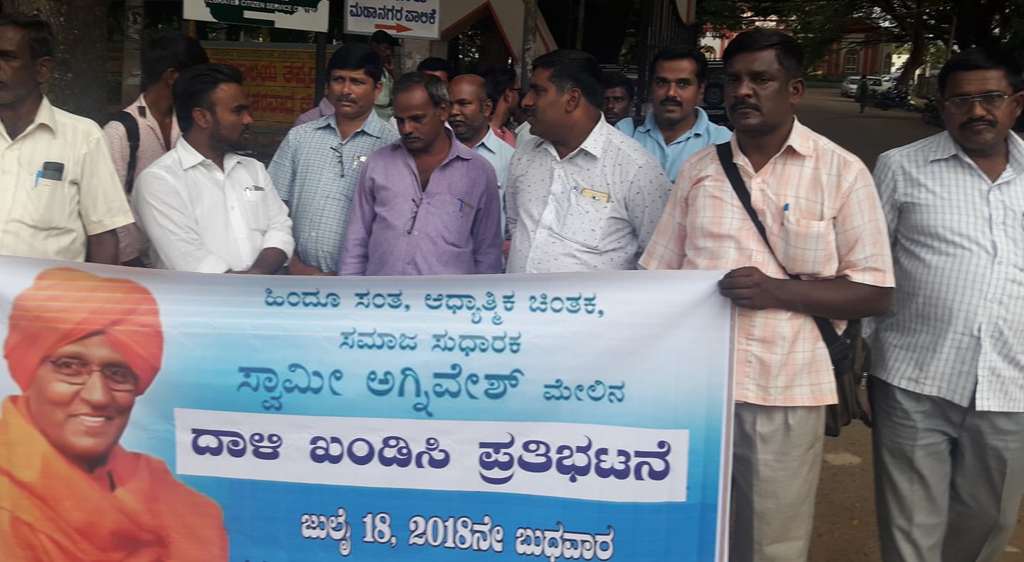 ಟೌನ್ಹಾಲ್ ನಲ್ಲಿ ಸಮಾವೇಶಗೊಂಡ ಪ್ರಗತಿಪರ ಸಂಘಟನೆಗಳ ಮುಖಂಡರು ಸ್ವಾಮಿ ಆಗ್ನಿವೇಶ್ ಮೇಲೆ ಹಲ್ಲೆ ನಡೆಸಿರುವುದನ್ನು ತೀವ್ರವಾಗಿ ಖಂಡಿಸಿದರು. ಹಿಂದೂ ಸಂತರಾದ ಸ್ವಾಮಿ ಅಗ್ನಿವೇಶ್ ಮೇಲೆ ಗೂಂಡಾಗಳ ರೀತಿ ದಾಳಿ ನಡೆಸಿರುವುದು ಹೇಯ ಕೃತ್ಯವಾಗಿದೆ ಎಂದು ದೂರಿದರು.