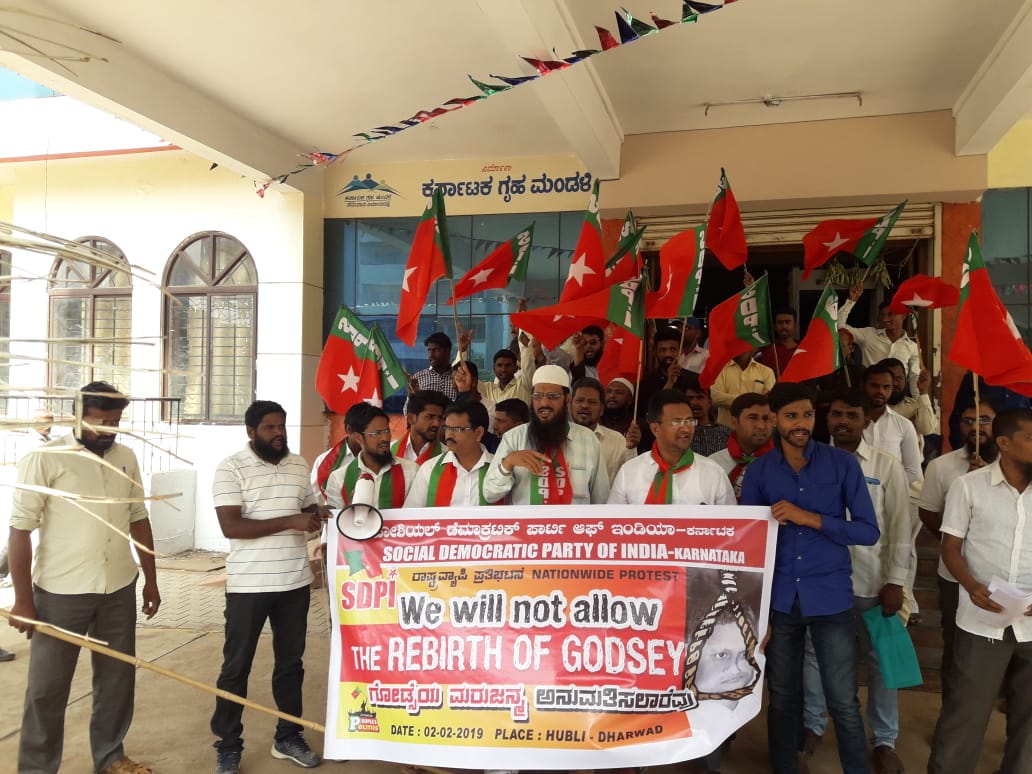 ಗೋಡ್ಸೆ ಪ್ರತಿಕೃತಿ ನೇಣುಗಂಬಕ್ಕೆ ಏರಿಸಿ ಎಸ್ ಡಿಪಿಐ ಪ್ರತಿಭಟನೆ