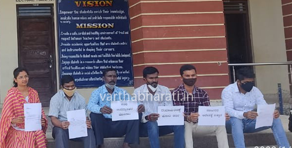 ಕಾಲೇಜಿನ ಅತಿಥಿ ಉಪನ್ಯಾಸಕರಾದ ಫಕೀರಪ್ಪ, ಪ್ರಸಾದ್, ಸುಭಾಶ್ ಧರಣಿ ನೇತೃತ್ವ ವಹಿಸಿದ್ದರು.