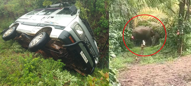 ಕಾರನ್ನು ಅಟ್ಟಾಡಿಸಿದ ಕಾಡಾನೆ; ಕೂದಲೆಳೆ ಅಂತರದಲ್ಲಿ ಚಾಲಕ ಪಾರು