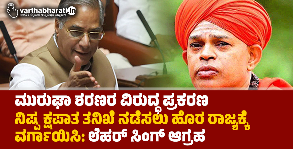 ಮುರುಘಾ ಶರಣರ ವಿರುದ್ಧ ಪ್ರಕರಣ; ನಿಷ್ಪಕ್ಷಪಾತ ತನಿಖೆ ನಡೆಸಲು ಹೊರ ರಾಜ್ಯಕ್ಕೆ ವರ್ಗಾಯಿಸಿ: ಲೆಹರ್ ಸಿಂಗ್ ಆಗ್ರಹ