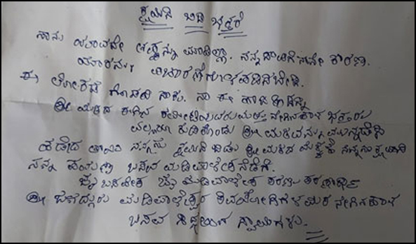 'ನಾನು ಯಾವುದೇ ತಪ್ಪನ್ನು ಮಾಡಿಲ್ಲ' ಎಂದು ಸ್ವಾಮೀಜಿಗಳು ಬರೆದಿದ್ದು ಎನ್ನಲಾದ ಡೆತ್ ನೋಟ್ ನಲ್ಲಿ ಅವರ ಸಹಿ ಕಾಣಿಸುವುದಿಲ್ಲ.
