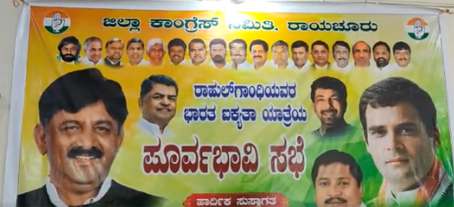 ರಾಯಚೂರು: 'ಭಾರತ್ ಜೋಡೋ ಯಾತ್ರೆ' ಪೂರ್ವಭಾವಿ ಸಭೆಯ ಬ್ಯಾನರ್ ನಲ್ಲಿ ಸಿದ್ದರಾಮಯ್ಯ ಭಾವಚಿತ್ರ ನಾಪತ್ತೆ!