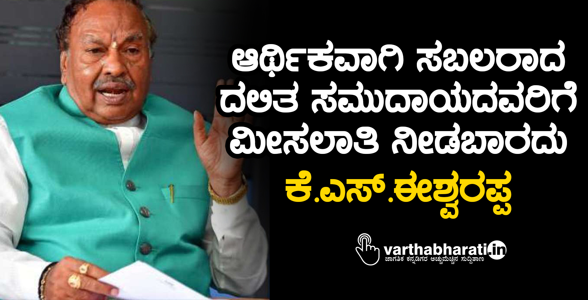 ಆರ್ಥಿಕವಾಗಿ ಸಬಲರಾದ ದಲಿತ ಸಮುದಾಯದವರಿಗೆ ಮೀಸಲಾತಿ ನೀಡಬಾರದು: ಕೆ.ಎಸ್.ಈಶ್ವರಪ್ಪ