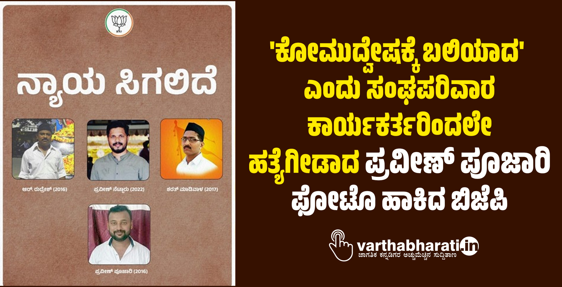 'ಕೋಮುದ್ವೇಷಕ್ಕೆ ಬಲಿಯಾದ' ಎಂದು ಸಂಘಪರಿವಾರ ಕಾರ್ಯಕರ್ತರಿಂದಲೇ ಹತ್ಯೆಗೀಡಾದ ಪ್ರವೀಣ್ ಪೂಜಾರಿ ಫೋಟೊ ಹಾಕಿದ ಬಿಜೆಪಿ