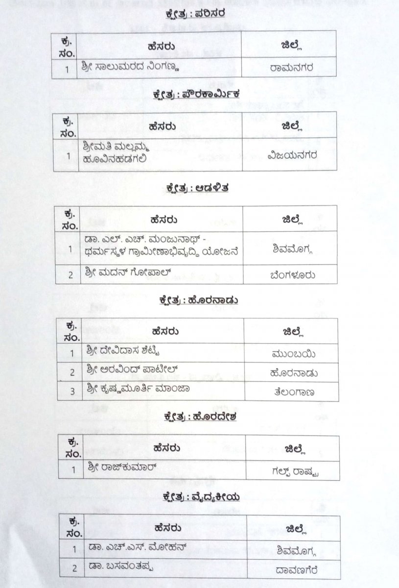 ಪ್ರಶಸ್ತಿಗೆ ಆಯ್ಕೆಗೊಂಡವರ ಪಟ್ಟಿ ಇಲ್ಲಿದೆ.